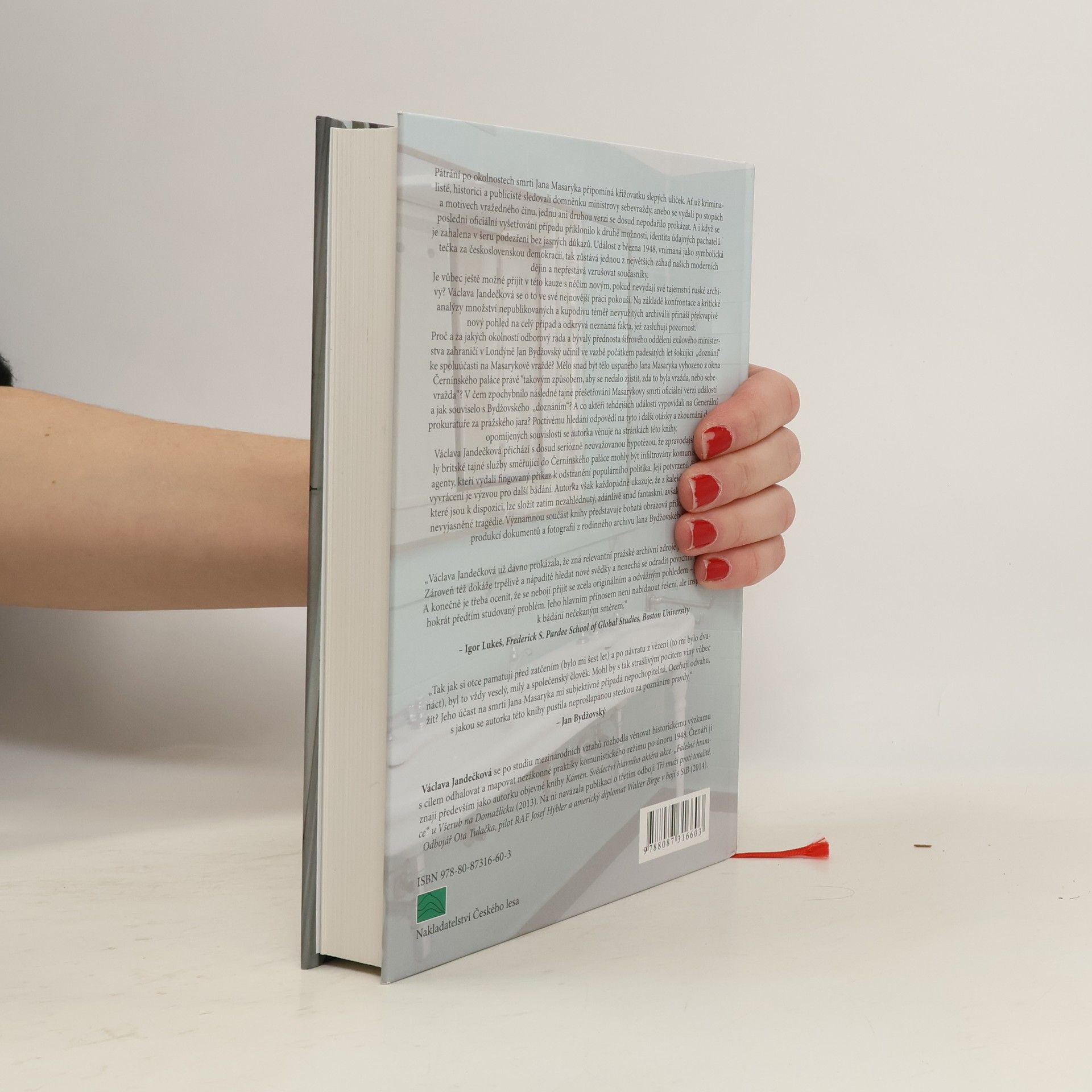Pátrání po okolnostech smrti Jana Masaryka připomíná křižovatku slepých uliček. Ať už se kriminalisté, historici a publicisté zaměřili na domněnku sebevraždy, nebo na motivy vraždy, žádná verze nebyla dosud prokázána. Poslední oficiální vyšetřování se přiklonilo k vraždě, avšak identita pachatelů zůstává zahalena v podezření bez jasných důkazů. Událost z března 1948, symbolická tečka za československou demokracií, tak zůstává jednou z největších záhad moderních dějin. Václava Jandečková se ve své práci pokouší přinést nový pohled na tento případ. Na základě kritické analýzy nepublikovaných archiválií odkrývá neznámá fakta. Zajímavé je „doznání“ Jana Bydžovského, bývalého šifrového specialisty exilového ministerstva, k účasti na Masarykově vraždě. Autorka se ptá, zda tělo Jana Masaryka mělo být vyhozeno tak, aby nebylo jasné, zda šlo o vraždu nebo sebevraždu. Zkoumá také, jak tajné přešetřování zpochybnilo oficiální verzi událostí a co vypovídali aktéři na Generální prokuratuře během pražského jara. Jandečková přichází s hypotézou, že britské zpravodajské kanály mohly být infiltrovány komunistickými agenty, kteří mohli vydat příkaz k odstranění populárního politika. Potvrzení či vyvrácení této teorie vyžaduje další bádání. Autorka ukazuje, že z dostupných faktů lze složit logický obraz této tragédie. Kniha obsahuje bohatou obrazovou přílohu, včetně dokumentů a fotografií z rodinného archivu Jana Bydžovského.