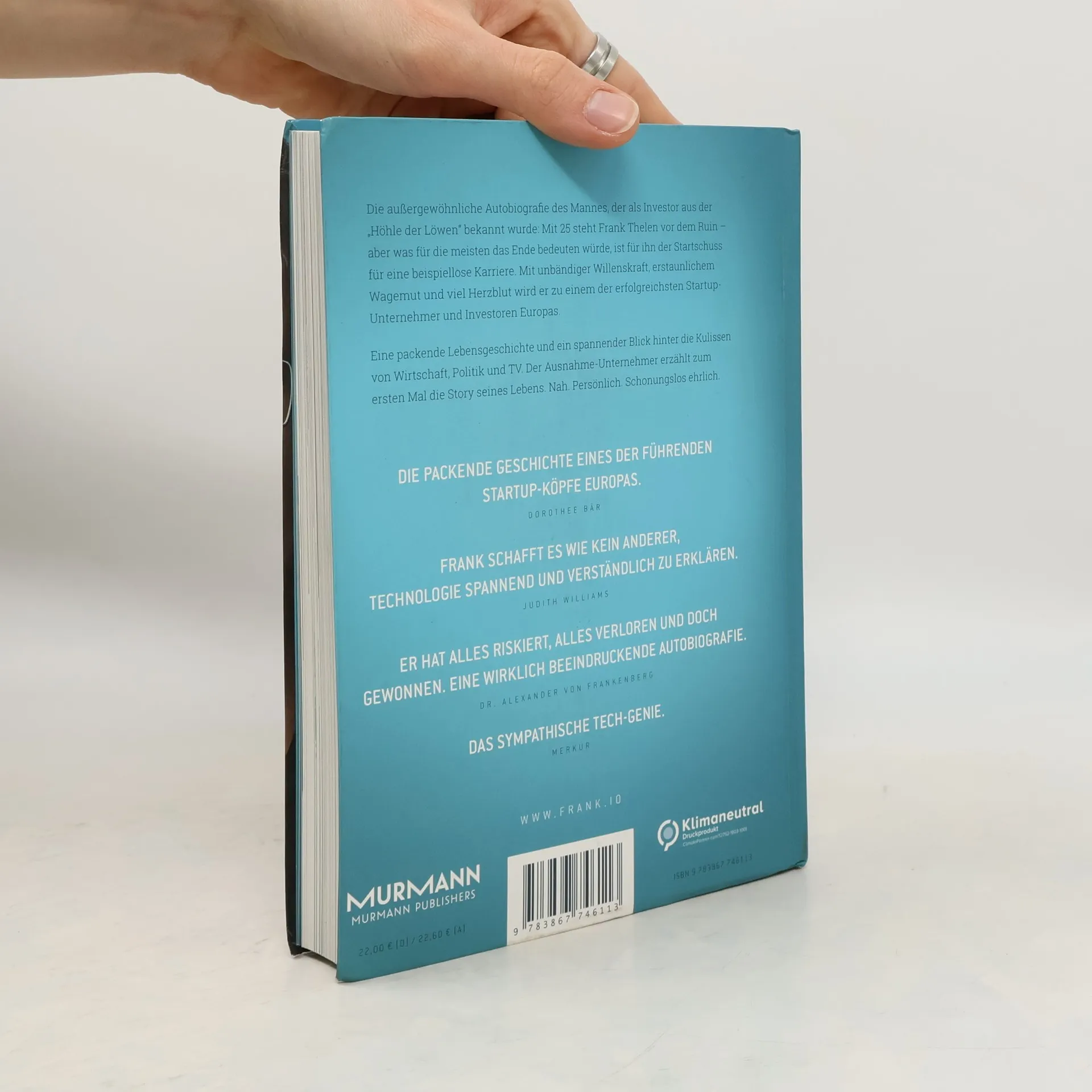 Die außergewöhnliche Autobiografie des Mannes, der als Investor aus der „Höhle der Löwen“ bekannt wurde: Mit 25 steht Frank Thelen vor dem Ruin – aber was für viele andere das Ende bedeuten würde, ist für ihn der Startschuss für eine beispiellose Karriere. Mit phantastischer Willenskraft, erstaunlichem Wagemut und unbändiger Energie wird er zu einem der erfolgreichsten Startup-Unternehmer und Investoren Deutschlands. Eine packende Lebensgeschichte, ein spannender Blick hinter die Kulissen der Wirtschaft und eine hellsichtige Gesellschaftsanalyse. Fundiert. Glasklar. Zukunftsweisend. Einer der bekanntesten Investoren Deutschlands erzählt zum ersten Mal die Story seines Lebens. Nah. Persönlich. Schonungslos ehrlich.