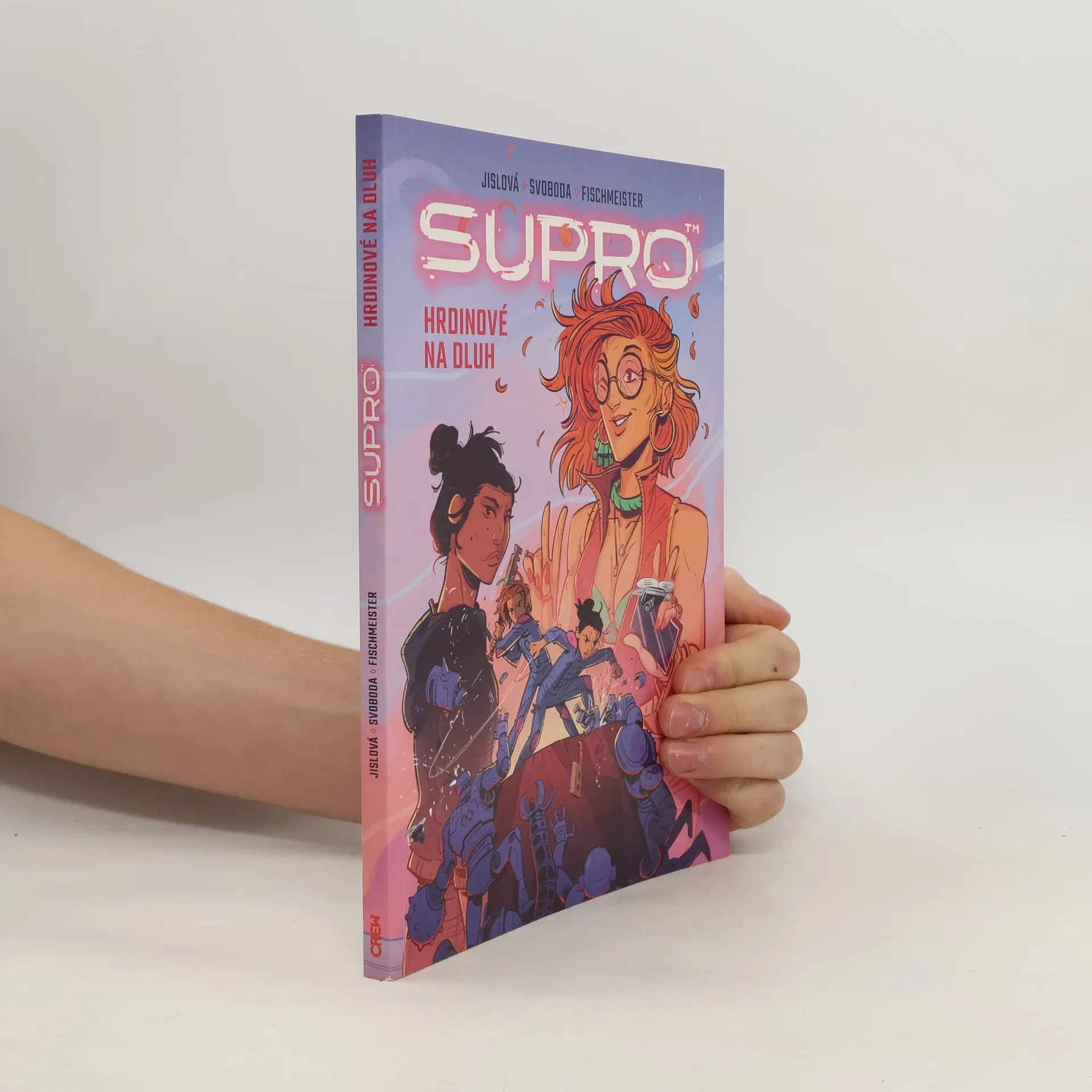 Co byste udělali proto, abyste se stali superhrdiny? Ve světě Supro™ nemusíte za superschopnost zaplatit pádem do radioaktivního odpadu, traumatickou ztrátou rodiny ani přiletět z jiné planety. Stačí… zaplatit. Nemáte na to? Nevadí! Náš asistenční program nabízí celou škálu výhodných půjček! O superhrdinském životě sní i Ida, o to víc, že už jednu šanci promarnila. Její přítelkyně Evelína mezitím po boku svého dvojčete Thea sklízí slávu a úspěch. Jejich životy by snad ani nemohly být rozdílnější. Když se začnou kupit podivné náhody, které Idu málem stojí život, nechce se jí věřit, že by šlo o součást promyšleného plánu. Kdo by vydělal na odstranění někoho tak nepodstatného, tak ne-suprového, jako je ona?Supro™: Hrdinové na dluh je satirický pohled na svět superhrdinů, který spojuje společenskou kritiku s romantickým dramatem a napínavým thrillerem. Za tímto skvělým dílem z žánru young adult stojí osvědčení tvůrci Štěpánka Jislová (Bez vlasů, Milada Horáková), Viktor Svoboda (Rychlé šípy a jejich úžasná nová dobrodružství) a Martina Fischmeister (La Loba).