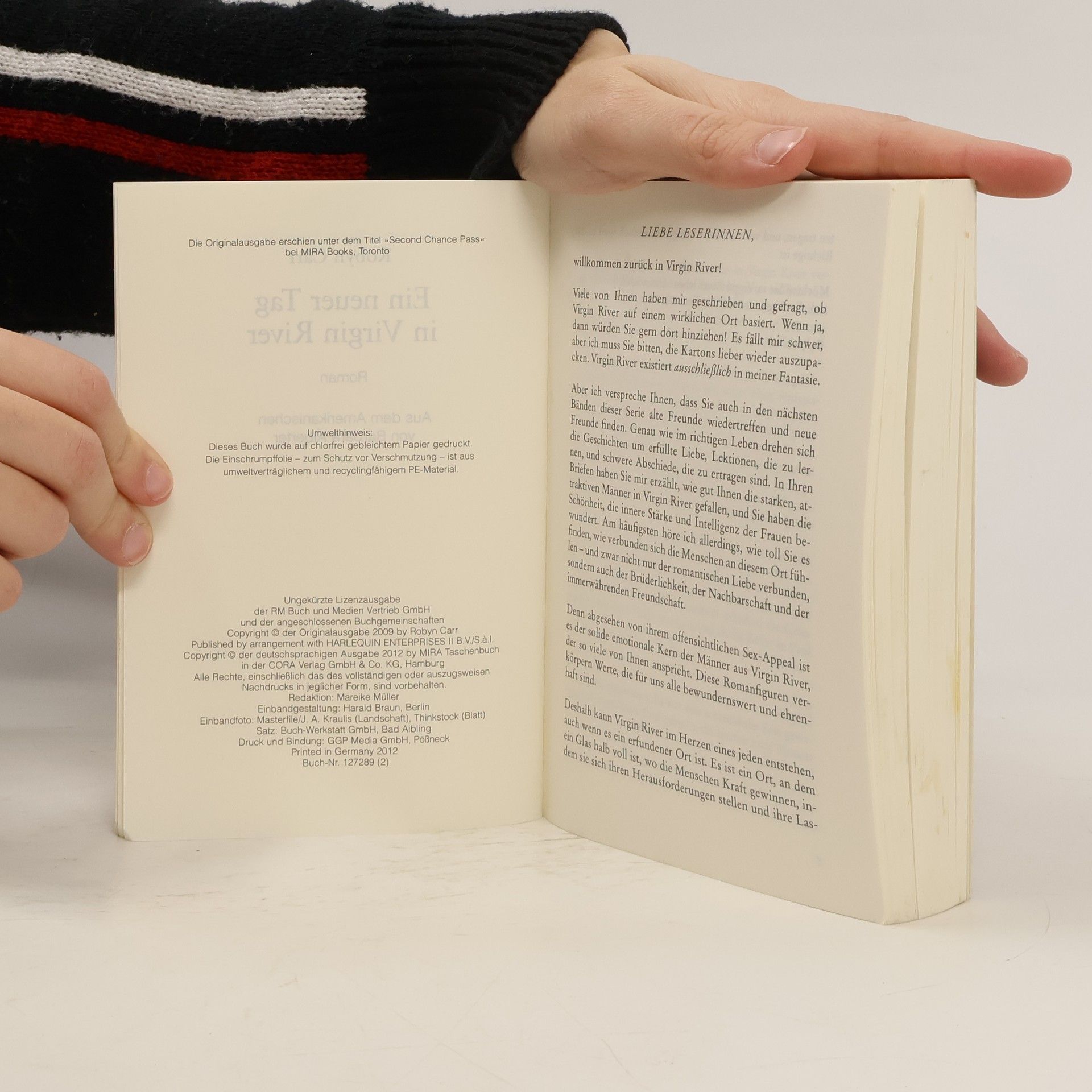 Raus aus der Hektik der Großstadt, rein in die Natur. Das Angebot, als Arzthelferin und Hebamme in dem kleinen Örtchen Virgin River zu arbeiten, kommt der Krankenschwester Mel gerade recht. Vielleicht kann sie hier die Schicksalsschläge der letzten Monate überwinden. Allerdings stellt sie gleich bei ihrer Ankunft fest, dass die Realität des einfachen Landlebens nicht dem idyllischen Bild entspricht, was sie sich gemacht hatte. Doch ein auf den Stufen der Arztpraxis ausgesetzter Säugling macht ihr einen Strich durch die Abreisepläne. Und als der attraktive Barbesitzer Jack sich dann noch alle Mühe gibt, ihr die Schönheit der Landschaft und die Menschen des Ortes nahe zu bringen, ist Mel beinahe versucht, Virgin River noch eine Chance zu geben.