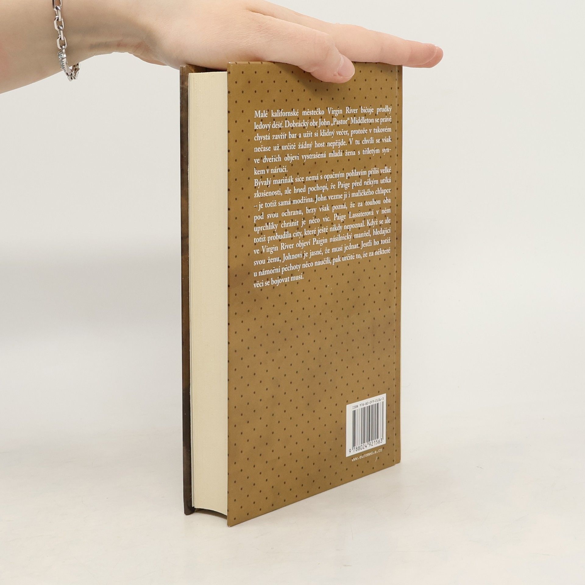 Městečko Virgin River bičuje ten večer prudký ledový déšť. Dobrácký obr John „Pastor“ Middleton se právě chystá zavřít bar, protože v takovém nečase už určitě žádný host nepřijde, když se v něm najednou objeví vystrašená mladá žena s tříletým synkem v náručí. Bývalý mariňák nemá sice se ženami velké zkušenosti, ale hned pochopí, že Paige před někým utíká – je totiž samá modřina. John vezme ji i maličkého chlapce pod svou ochranu, brzy však pozná, že za touhou oba uprchlíky chránit je něco víc. Paige Lassiterová v něm probudila city, které ještě nikdy nezažil. Jenže pak se v městečku objeví Paigin násilnický manžel, a Johnovi je jasné, že musí jednat. Jestli ho totiž u námořní pěchoty něco naučili, pak určitě to, že za některé věci se vyplatí bojovat.