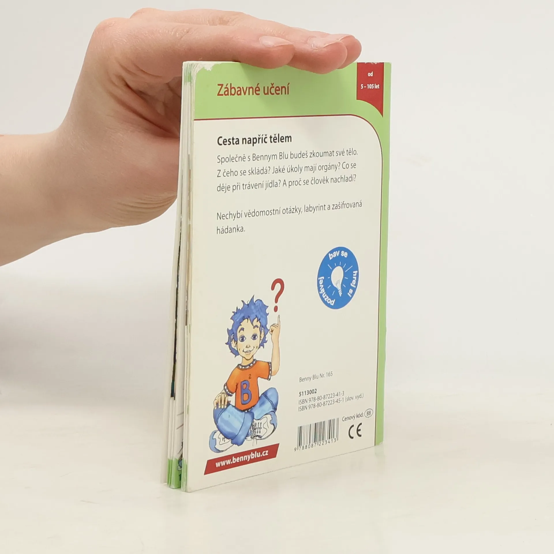 Cesta napříč tělem. Společně s Bennym Blu budeš zkoumat své tělo. Z čeho se skládá? Jaké úkoly mají orgány? Co se děje při trávení jídla? A proč se člověk nachladí? Nechybí vědomostní otázka, labyrint a zašifrovaná hádanka.