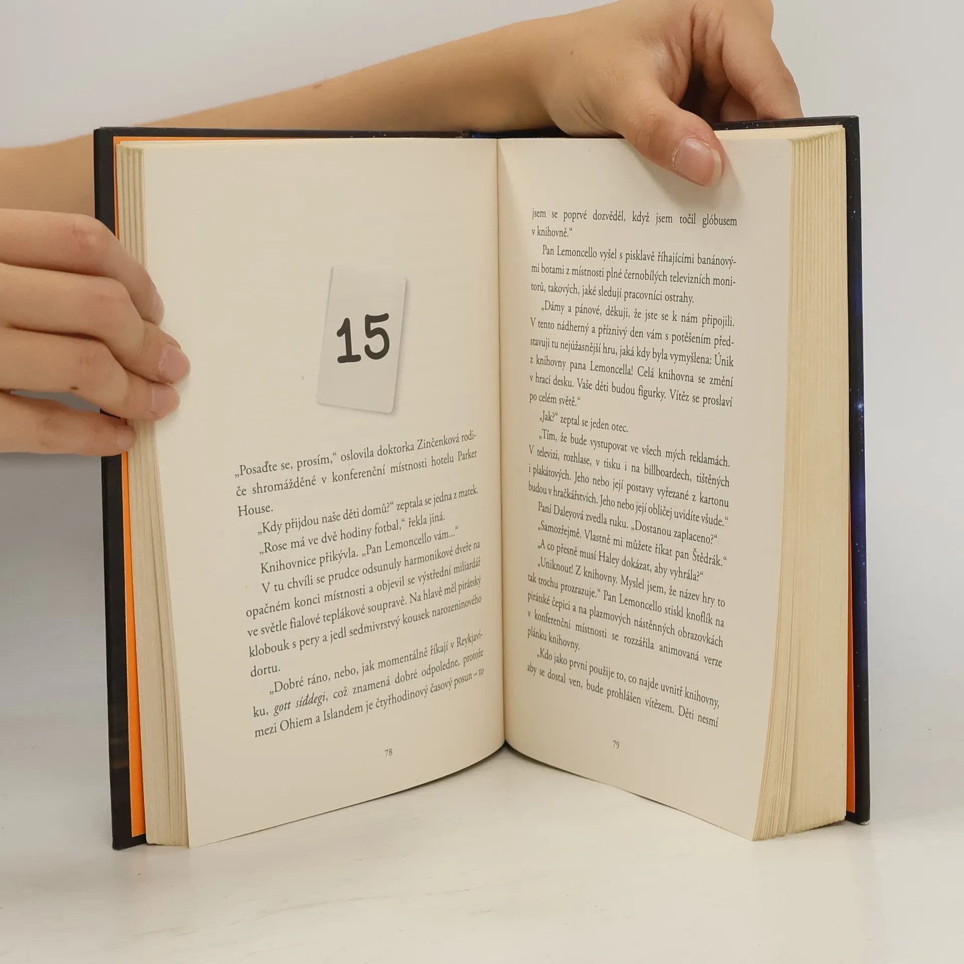 Strhující dobrodružství o návštěvě supermoderní knihovny, z níž se vyklube úniková hra Kdo by neznal Luigiho Lemoncella – nejslavnějšího tvůrce her na světě! Kyle je jedním z jeho fanoušků a milovník všech druhů her.Supermoderní knihovna, kterou pan Lemoncello ve městě otevřel, budí obdiv i úžas. Mimo knih totiž ukrývá i 3D kino, elektronické vzdělávací centrum, hologramy, interaktivní displeje nebo elektromagnetické vznášedlové plošiny, které dopravují návštěvníky k objednaným knihám.Kyle vyhraje pozvánku na speciální večer v knihovně, a je štěstím bez sebe. On a jedenáct dalších dětí si užije noc plnou her a zábavy. Když však ráno chtějí odejít, dveře knihovny zůstanou zamčené a všichni si uvědomí, že ta skutečná hra teprve začíná.Kyle brzy zjistí, že bez spolupráce bude zvítězit mnohem složitější a že každý dobrý skutek se počítá. Na druhou stranu podvádět se rozhodně nevyplácí.Podaří se různorodé partě dětí spolupracovat a vyluštit díky tomu zapeklité hádanky? Najdou cestu ven?