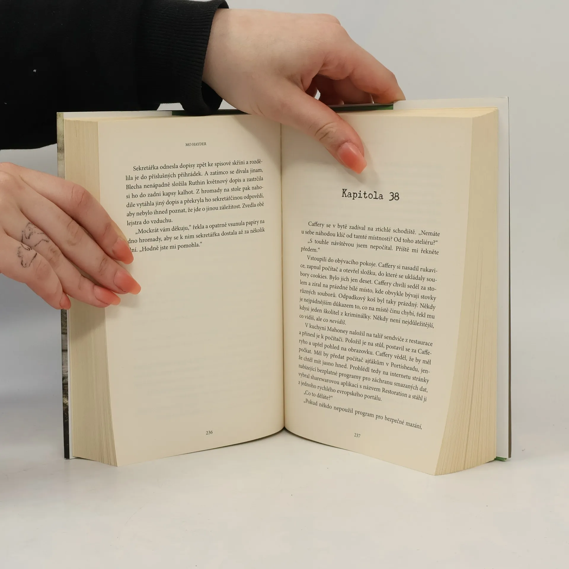 Mo Hayder nás znovu vtahuje do děsivého, temného světa. Natolik děsivého, že tentokrát se začne bát i detektiv Caffery. Na odlehlém místě za městem byla nalezena mrtvola ženy v pokročilém stádiu rozkladu. Policie došla k závěru, že šlo o sebevraždu, a soudní patoložka tuto domněnku potvrdila. Jeden člověk však stále pochybuje: detektiv Jack Caffery. A pochybnosti se přemění v jistotu, když policejní potápěčka Blecha Marleyová vyloví ze zatopeného lomu torzo psa. Ten pes patřil mrtvé ženě. A před smrtí ho kdosi stáhl z kůže. Caffery ví, že něco takového by před smrtí žádný sebevrah neudělal. A protože chce kolegům dokázat, že se mýlili, začne postupně pronikat do tajů předčasně ukončeného života Lucy Mahoneyové. A zatímco nalézá temná zákoutí, o nichž neměli tušení ani Lucyini blízcí, začíná se ho zmocňovat podivný neklid. Jako by ho někdo sledoval... A pak je nalezena další žena, jejíž mrtvola jako by byla kopií té předchozí. Události nabírají rychlý spád. Caffery se ocitá v jejich víru a znovu se přesvědčuje, že každý člověk v sobě skrývá cosi temného: zavražděná žena, majitel starožitnictví, on sám... a také jeho blízká kolegyně.