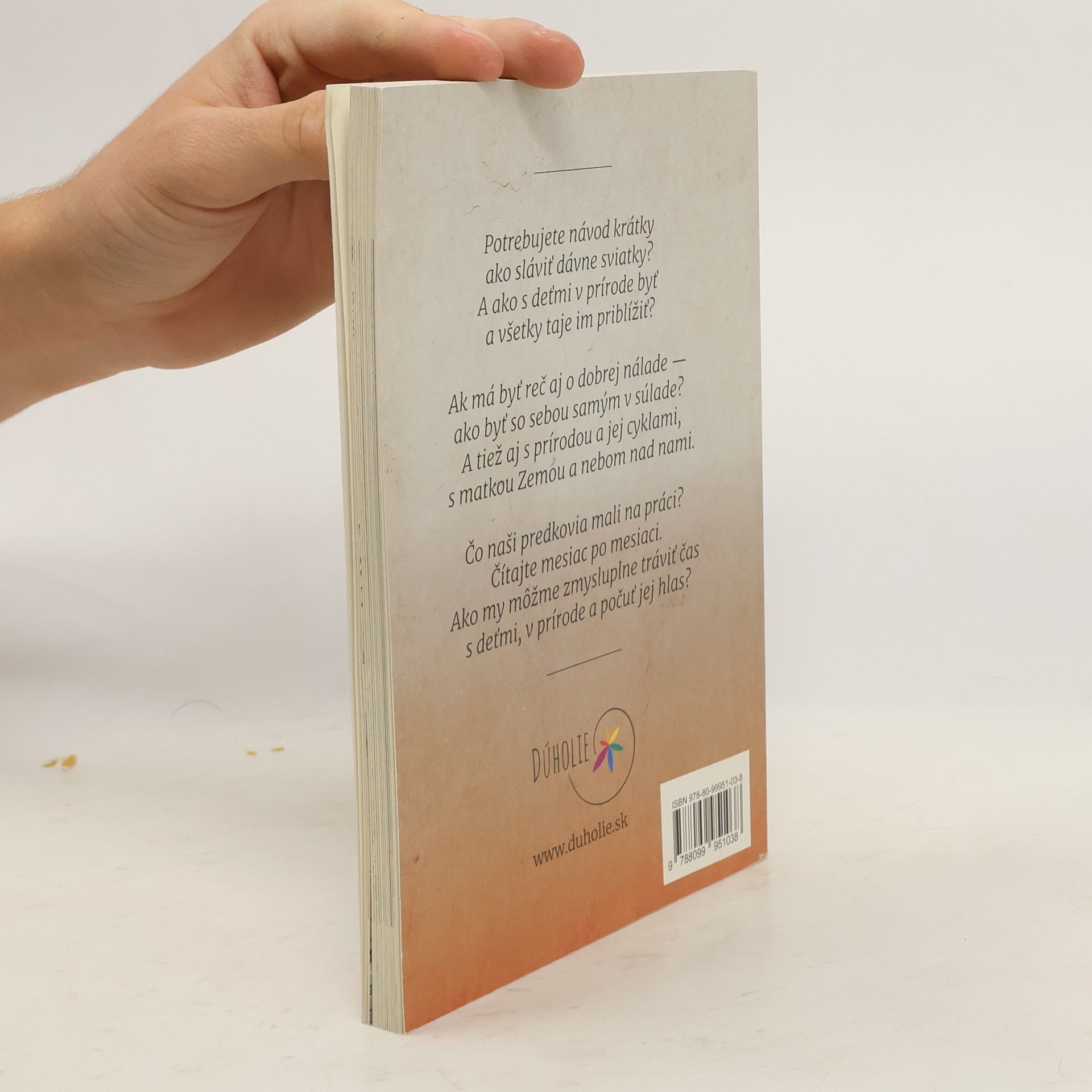 Kniha pre užšie spojenie rodičov a detí s prírodou a jej darmi.Určená pre všetkých, ktorí majú deti, pracujú s deťmi, ale aj pretých, čo deti nemajú a chcú vyživiť svoje vnútorné dieťa.Ako tráviť čas v prírode s deťmi zmysluplne? Na čo zamerať svoju pozornosť? Ako byť v súlade s prírodnými cyklami a so sebou samým? A ako tento zážitok priniesť deťom?Kniha S deťmi v kole roka vás bude sprevádzať mesiac po mesiaci. Pootvorí vám dvere do toho, čo sa deje v prírode a tiež do našej dávnej minulosti, do zvykov našich predkov. Poodhalí pravý význam našich sviatkov a tradícií. Podučí vás vnímať prírodu všetkými zmyslami a byť jej súčasťou. Okrem toho ponúka však i veľa nápadov zo súčasnosti, ktoré môžete s deťmi praktizovať počas celého roka, v súlade s dejmi v prírode. V každej kapitole nájdete i pieseň, ktorú si môžete s deťmi zaspievať a tiež množstvo inšpirácií na každýmesiac.