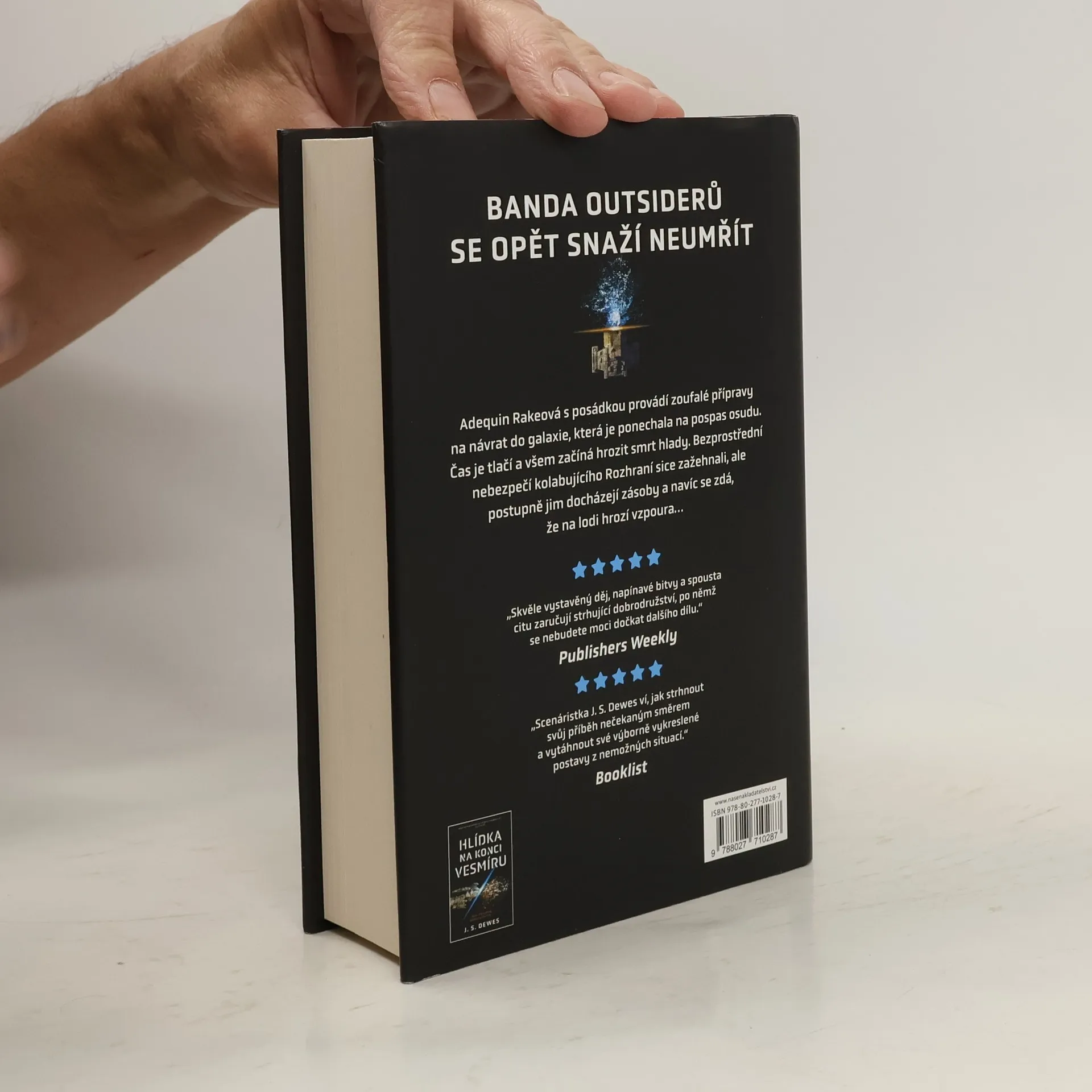 J. S. Dewes pokračuje ve své svižné akční dobrodružné sci-fi sérii Rozhraní s dalším dílem, Flotilou zatracených. A ti, kteří přežili Hlídku na konci vesmíru, nadále odmítají zemřít. Adequin Rakeová a její lidé jen těsně unikli hroutícímu se okraji vesmíru. Shromáždili pár dalších přeživších, avšak jejich prastará loď, nevybavená žádnými použitelnými motory, se vznáší v prázdnotě a hlídkařům hrozí brzká smrt hladem. Je na Cavalonovi, následníkovi trůnu ve vyhnanství, sarkastickém kreténovi trpícím existenciální krizí a geniálním inženýrovi, aby všechny zachránil. A Rakeová musí dát dohromady tým, který má za úkol najít exotický materiál potřebný k odletu zpět do civilizované části vesmíru. Budou však muset uniknout nemilosrdnému nepříteli a k tomu budou potřebovat nové spojence. A někteří z nich to nepřežijí.