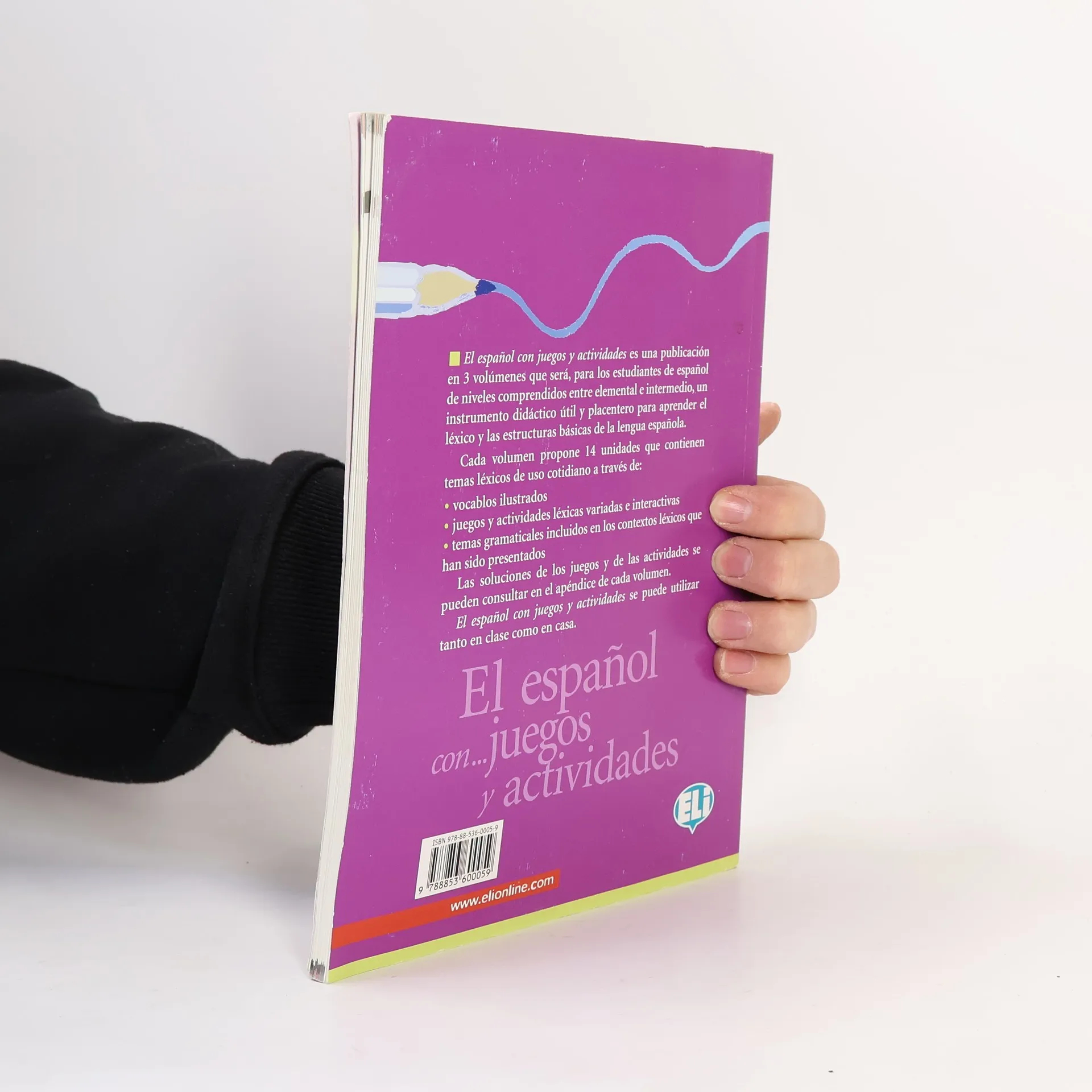 El espanol con juegos y actividades es una publicacion en 3 volumenes que sera, para los estudiantes de español de nivel elemental o intermedio, un instrumento didactico util y placentero para aprender et léxico y las estructuras bâsicas de la lengua española. Cada volumen propone 14 unidades que contienen temas léxicos de uso cotidiano a través de : vocablos ilustrados, juegos y actividades léxicos variadas e interactivas, temas gramaticales incluidos en los contextos léxicos que han sido presentados. Las soluciones de los juegos y de las actividades se pueden consultar en et apéndice de cada volumen. El español con juegos y actividades se puede utilizar tanto en clase como en casa.
