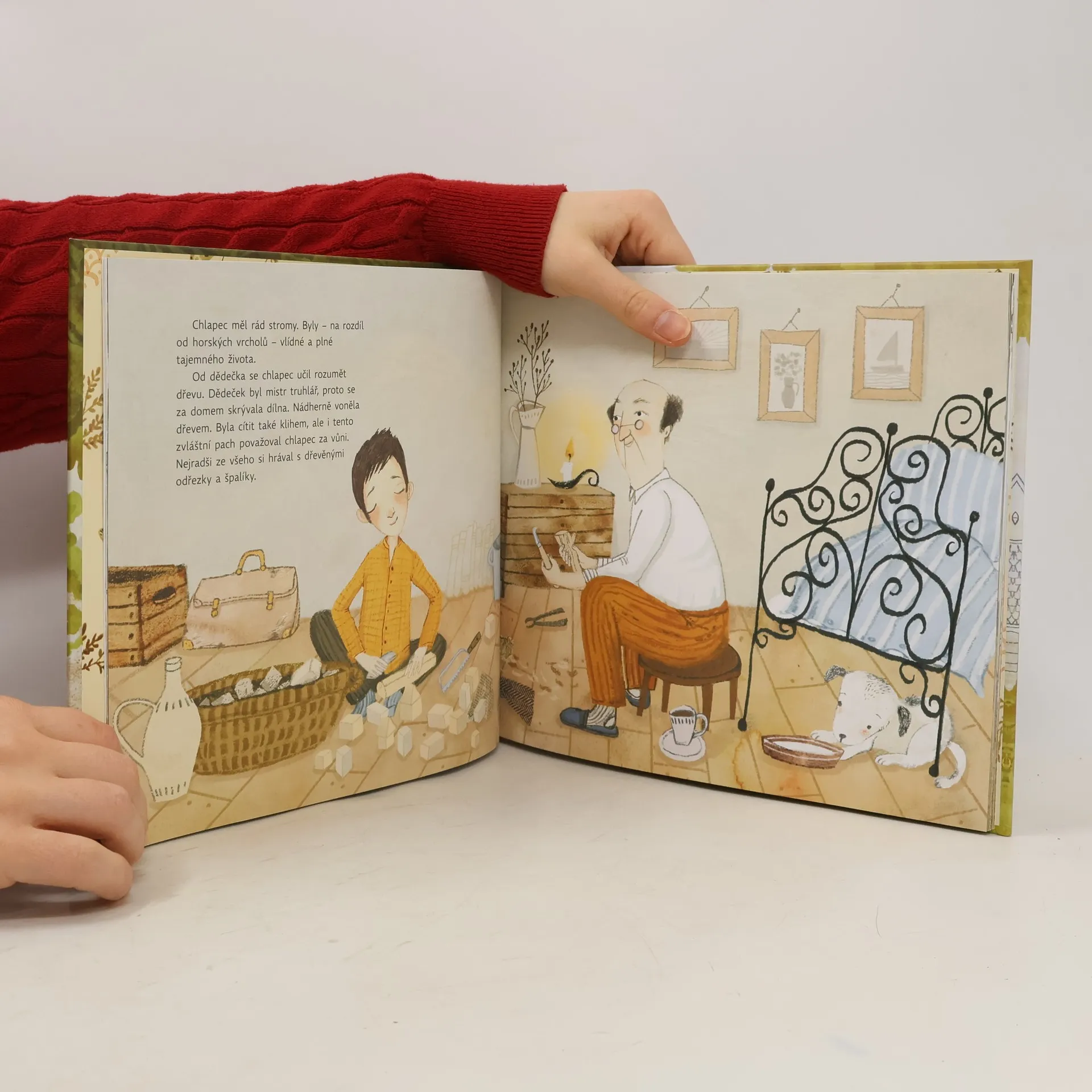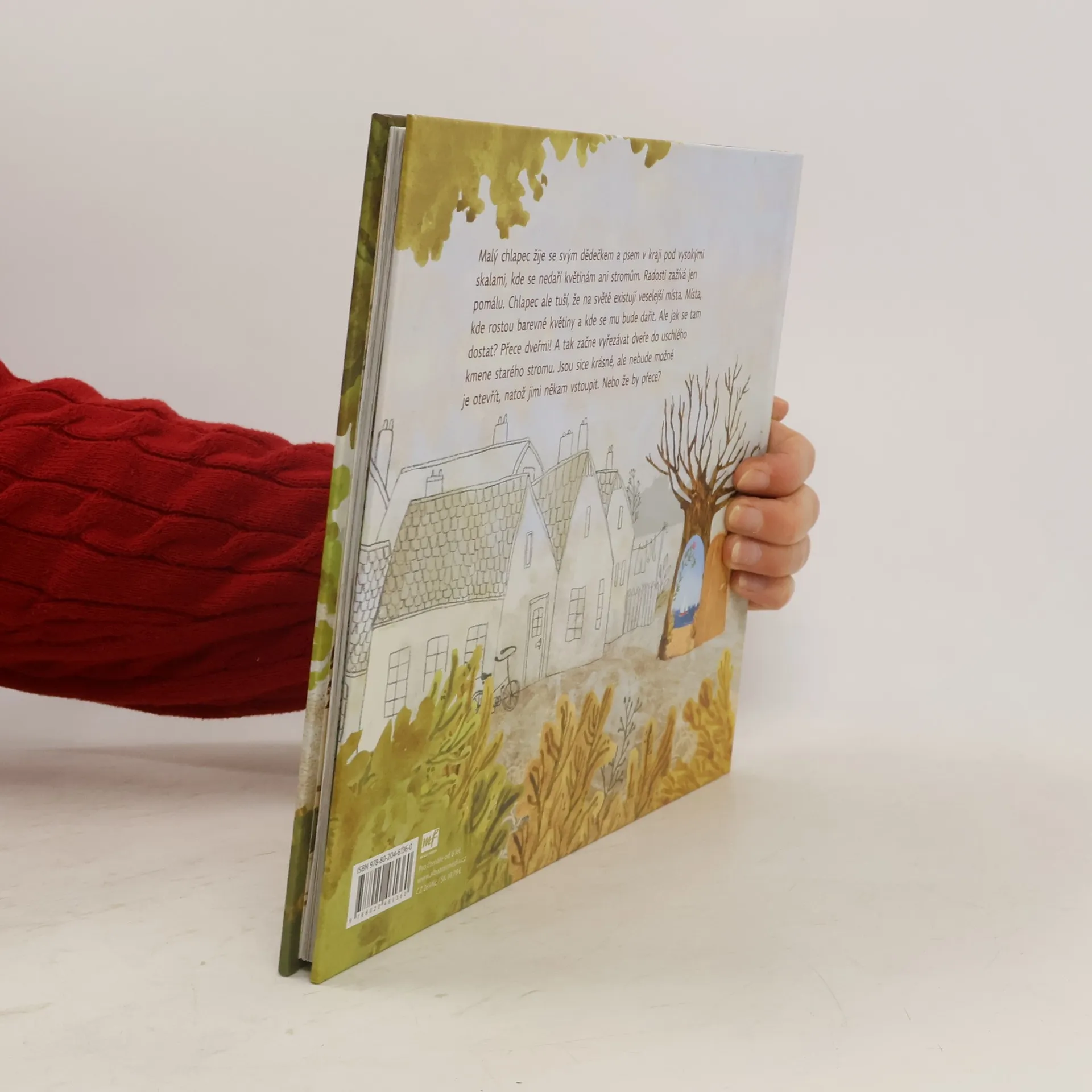 Malý chlapec žije se svým dědečkem a psem v kraji pod vysokými skalami, kde se nedaří květinám ani stromům. Radosti zažívá jen pomálu. Chlapec ale tuší, že jsou na světě místa, kde se mu nebudou ostatní posmívat. Místa, kde rostou květiny samy od sebe a kde se mu bude dařit. Ale jak se tam dostat? Přece dveřmi! A tak začne vyřezávat dveře do uschlého kmene starého stromu. Jsou sice krásné, ale nebude možné je otevřít, natož jimi někam vstoupit. Nebo že by přece?