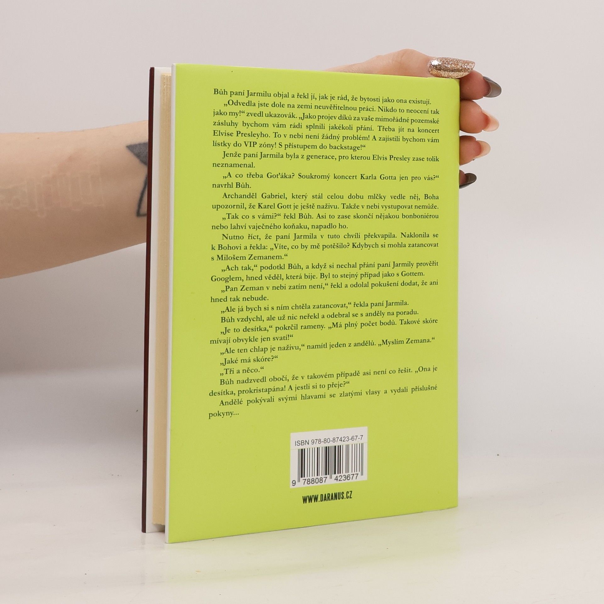 Známý publicista Miloš Čermák se již dávno etabloval i jako autor beletrie. Po úspěšné sbírce povídek Muži, co zírají na ženy, která vyšla v nakladatelství Daranus v loňském roce, nyní přichází s další povídkovou knihou. Obsahuje čtyřiatřicet mikropříběhů, někdy komických, jindy téměř hororových, v nichž autorova fantazie mísí každodenní realitu s leckdy nečekaným či absurdním vyústěním. Co asi čeká po smrti arogantního ministra, jenž nikdy nevěřil na nebe ani na peklo, a najednou se ocitl před posledním soudem? Jaký je sex s mužem, kterého nejvíc ze všeho vzrušuje jeho vlastní altruistická povaha? Může najít duch Václava Havla společnou řeč s duchem Adolfa Hitlera? Je možné, aby dívka, která ví, že neexistuje, otěhotněla? Jak se změní naše životy, pokud společnost Google vyvine algoritmus, který na základě analýzy osobních údajů přesně určí datum smrti každého z nás? A jaký bude první úkol Miloše Zemana, až stane před tváří Boha? Čermákovy povídky ilustrované Milošem Gašparcem, spoluautorem legendárního komiksu Hana a Hana, přečtete jedním dechem. Zaručeně vás pobaví a možná v jejich hrdinech najdete sami sebe, své blízké a kolegy z práce.
