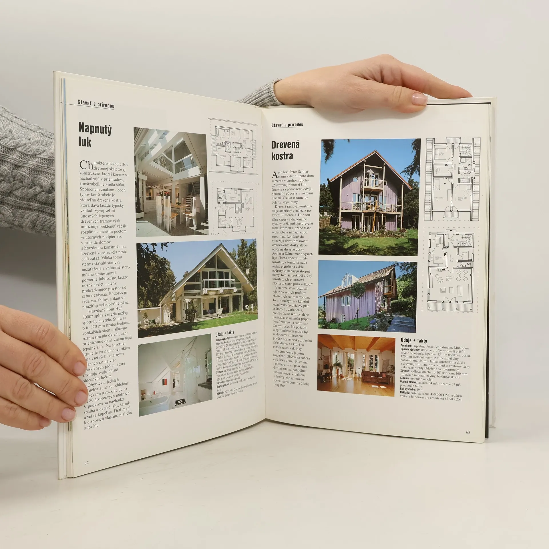Individuálna výstavba-Dlhá cesta k vysnívanému domu, Strostlivé plánovanie sa vypláca, Plánovať hlavou, stavať srdcom. Domy a typ krajiny-Sedliacky dom, Všetko šťastie na zemi, Zo štyroch jeden, Pôvab minulosti-nároky dneška, Nenásilný prevrat. Stavať s prírodou-Ctitelia slnka, Ekologicky, Ochranný včelí plást, Nebo a zem-oheň a voda, Drevo: stavebný materiál mnohých tvárí. Bývanie na svahu: Dom na chodúľoch, Zníženie, Priehľadne a bielo, Rozprávková panoráma, Na svahu sa žiada tvorivosť. Moderná reč foriem: Vila pre šiestich, Súkromne a verejne, Polo a porsche, Štyri stĺpy a drevená obloha, Odvaha na voľnú tvorbu, Siluety a sklené priečelia.