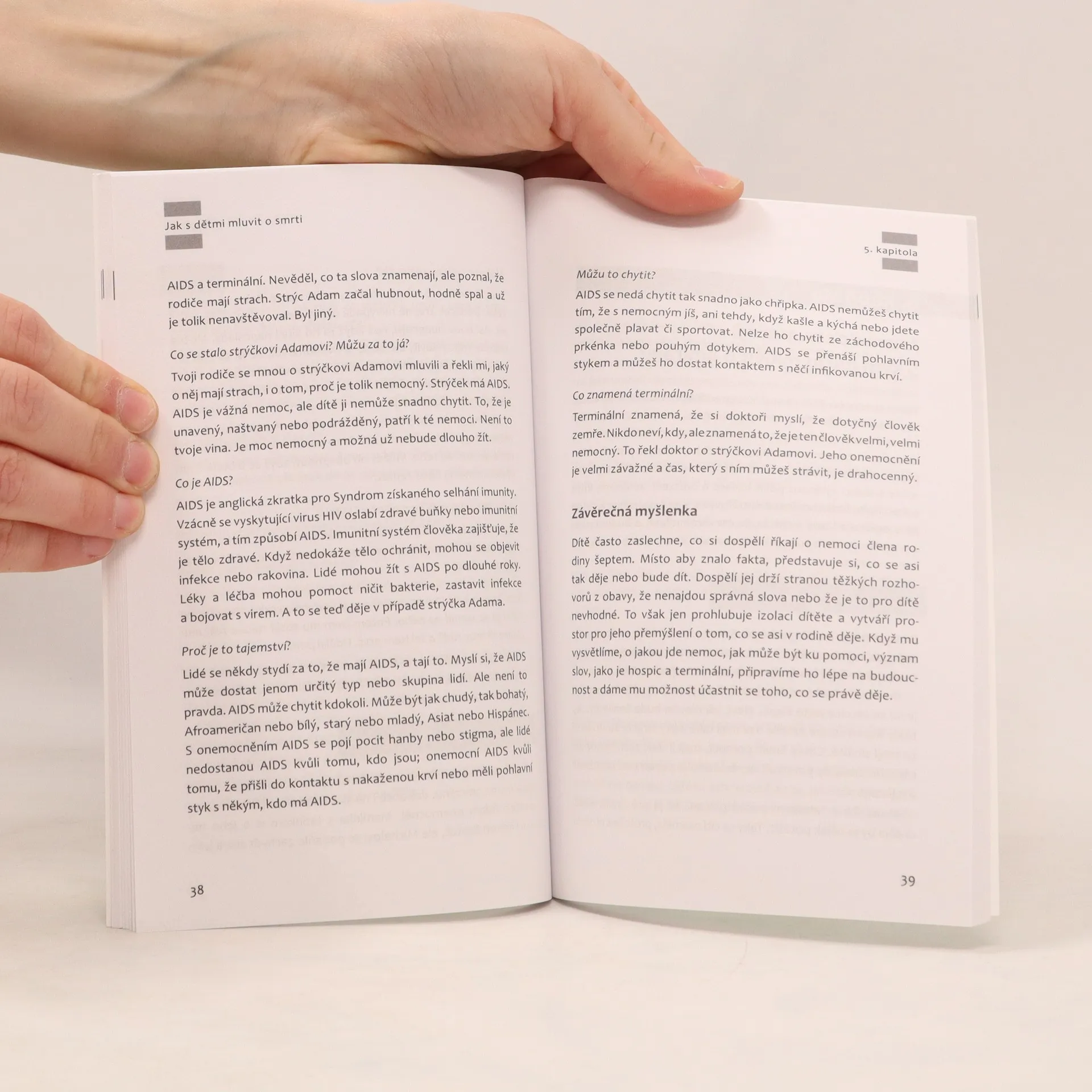 Smrt je náročné téma, zejména pokud s ním přicházejí děti. Autorka se zabývá myšlenkami na smrt a pocity, které v souvislosti s ní děti prožívají. Ať již se děti vyrovnávají se smrtí blízké osoby, domácího mazlíčka nebo samy žijí s nevyléčitelnou nemocí, hledají dospělí jen obtížně odpovědi na otázky svých dětí týkající se smrti. Dá se smrt zvrátit, proč lidé umírají, co se po smrti stane s tělem, dostanu se do ráje, setkám se s Bohem? Kniha je užitečným pomocníkem pro rodiče, vychovatele a učitele dětí každého věku.