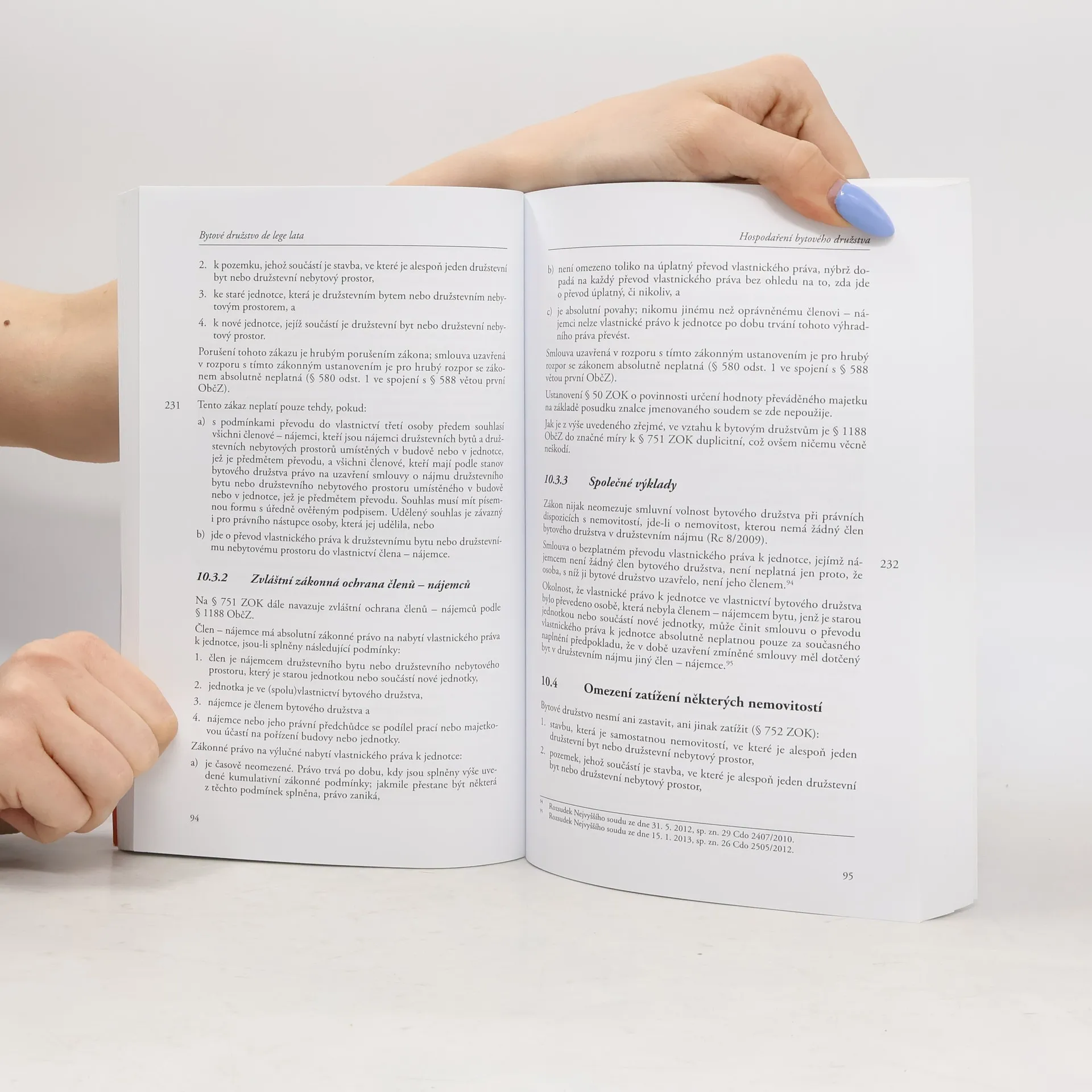 Publikace se zabývá aktuální problematikou bytového družstevnictví v kontextu celého jeho novodobého vývoje. Meritum práce spočívá v rozboru platné právní úpravy, výklad však pojednává i o vzniku a historii bytového družstevnictví v českých zemích. Práce podrobně analyzuje jednak právní úpravu bytového družstva v zákoně o obchodních korporacích, jednak právní úpravu povinných a dobrovolných převodů družstevních bytů a družstevních nebytových prostorů v někdejších stavebních a lidových bytových družstvech, jež po rekodifikaci českého soukromého práva doznaly významných změn. Opomenuta není ani problematika vypořádání právních vztahů k pozemkům užívaných bytovými družstvy a problematika správy některých domů ve spoluvlastnictví někdejších stavebních a lidových bytových družstev. Kniha je určena primárně studentům právnických fakult, jimž nepochybně poslouží jako učebnice, sekundárně pak všem právníkům i neprávníkům, kteří se problematikou bytového družstevnictví zabývají.