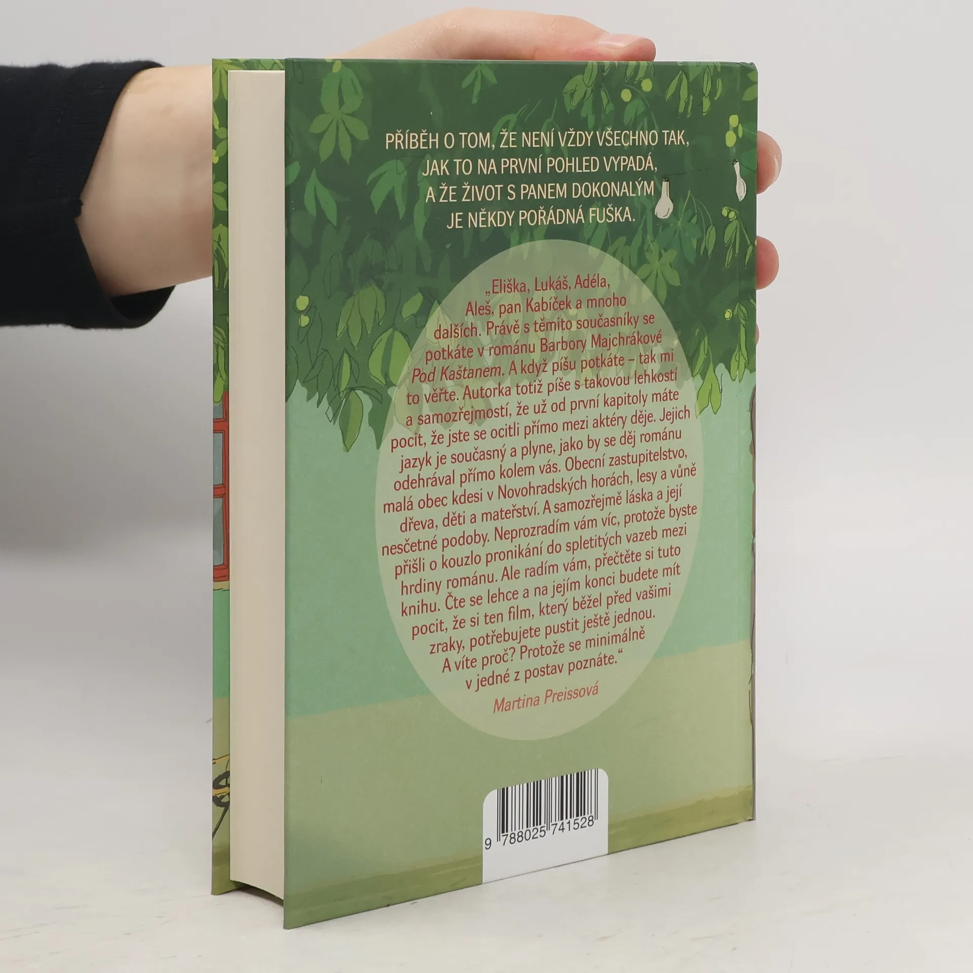 Romantická letní komedie o nových začátcích. Příběh o tom, že není vždy všechno tak, jak to na první pohled vypadá a že život s panem Dokonalým je někdy pořádná fuška.Eliška skončila po rozvodu bez peněz, zázemí i nadějných vyhlídek do budoucna. Až ve chvíli, kdy získá takřka vysněnou práci v malé vesničce v Novohradských horách, se začíná zdát, že by mohla mít alespoň trochu štěstí. Jenomže ne všechno je tak, jak to na první pohled vypadá a její nové zaměstnání možná nebude až tolik idylické, jak si původně představovala. A co teprve, když se ke všem jejím problémům přidá jeden neuvěřitelně sexy milionář, starosta s vášní pro pořádání plesů, nerudný truhlář a zoufalá maminka s opuštěným gulášovým stánkem!„Eliška, Lukáš, Adéla, Aleš, pan Kabíček a mnoho dalších. Právě s těmito současníky se potkáte v románu „Pod kaštanem“. A když píšu potkáte – tak mi to věřte. Autorka totiž píše s takovou lehkostí a samozřejmostí, že už od první kapitoly máte pocit, že jste se ocitli přímo mezi aktéry děje. Garantuju vám, že minimálně v jedné z postav se poznáte i vy!– Martina Preissová