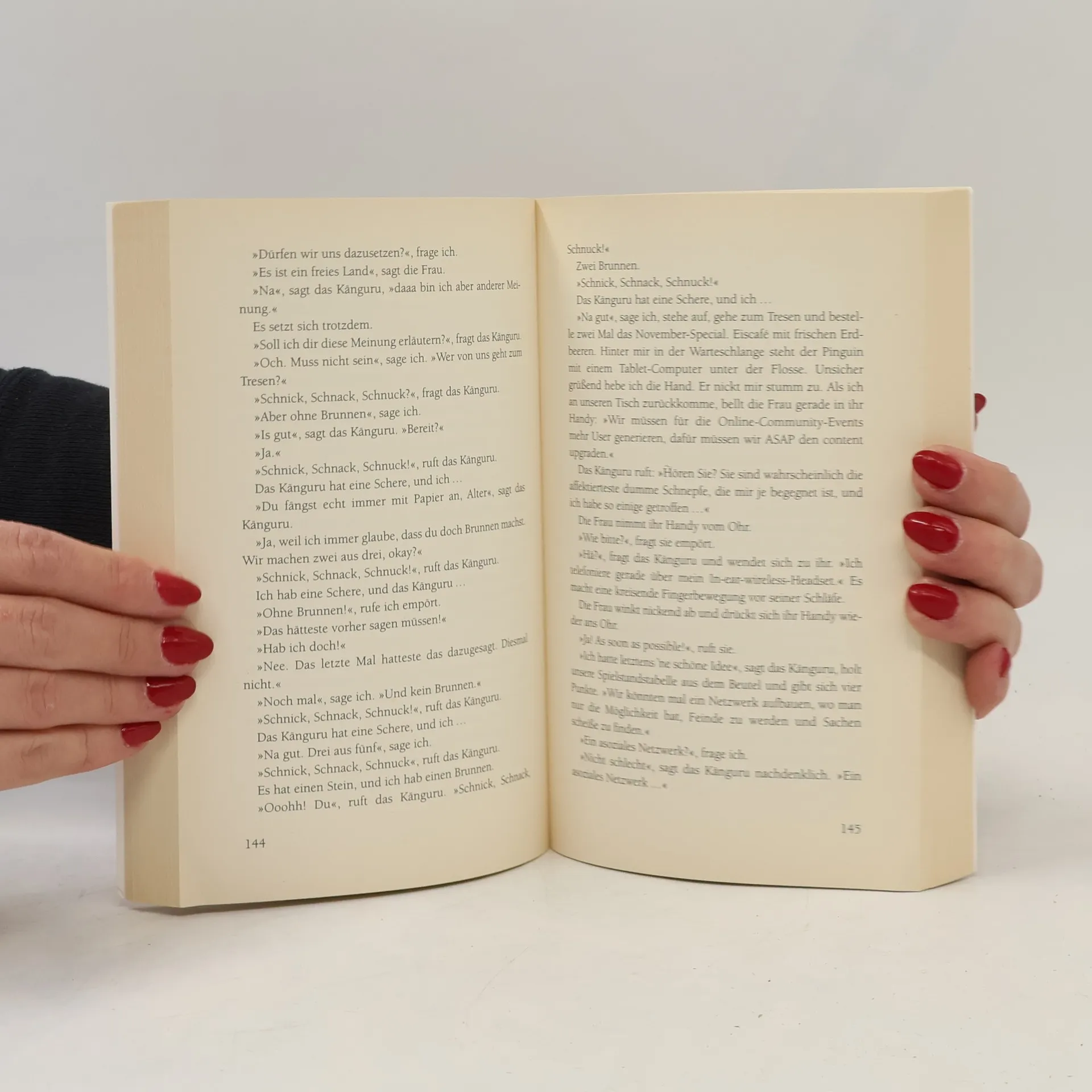 Sie sind wieder da – das kommunistische Känguru und der stoische Kleinkünstler! Auf der Jagd nach dem höchstverdächtigen Pinguin rasen sie durch die ganze Welt. Spektakuläre Enthüllungen! Skandale! Intrigen! Ein Mord, für den sich niemand interessiert! Eine Verschwörung auf niedrigster Ebene! Ein völlig abstruser Weltbeherrschungsplan! Mit Spaß, Spannung und Schnapspralinen ...
