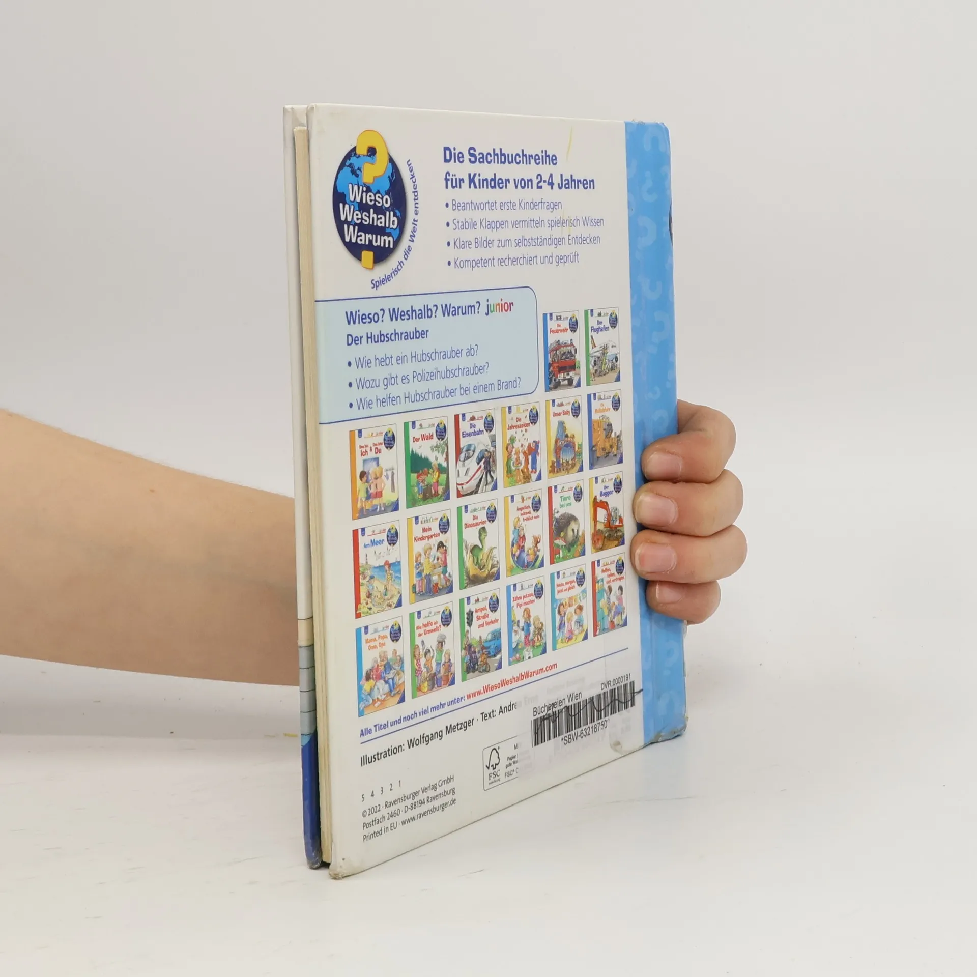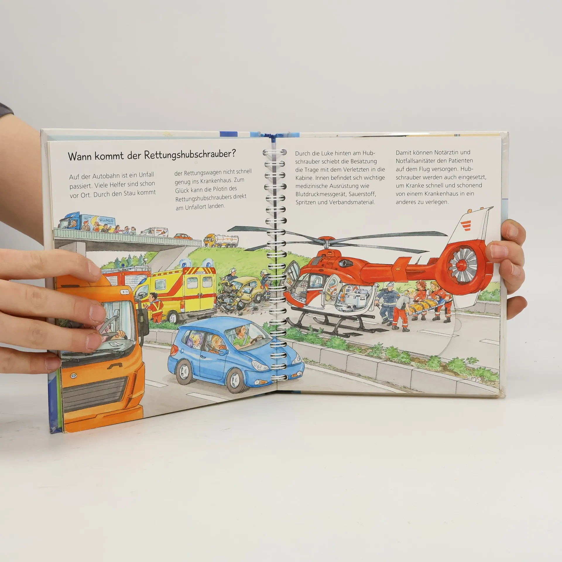 Was ein Helikopter alles kann! Am Rattern seiner Rotoren erkennen schon kleine Kinder ihn aus der Ferne: den Hubschrauber. Wenn es schnell gehen muss, man einen Überblick braucht oder das Gelände besonders unwegsam ist, kommt er geflogen. Für Rettungsdienst, Polizei und Feuerwehr ist das wendige Fluggerät im Einsatz. Mit spektakulären Klappen können Kinder es abheben und landen, ein Feuer löschen oder Rettungskräfte abseilen. Im Cockpit sind sie hautnah dabei und schauen der Pilotin über die Schulter. Die Sachbuchreihe für Kinder von 2-4 Jahren Jeden Tag entdecken Kinder etwas Neues und haben viele Fragen. Wann kommt die Feuerwehr? Was machen die Tiere im Winter? Warum muss ich Zähne putzen? Die beliebte Sachbuchreihe beantwortet die Fragen der Kinder auf Augenhöhe. Sie beleuchtet unterschiedlichste Themen aus ihrer Alltags- und Interessenswelt altersgerecht und mit viel Liebe zum Detail. Die Reihe ist speziell auf kleine Hände und die Bedürfnisse der Kleinsten angepasst. Klare und liebevolle Bilder, kurze Sachtexte sowie handliche Klappen, die Bewegungen veranschaulichen und überraschende Einblicke gewähren, ermöglichen Kindern, sich ihre Themen selbst zu erschließen. Der Spaß am eigenhändigen Entdecken, die liebevolle Umsetzung und die hochwertige Ausstattung garantieren langanhaltende Freude an jedem Buch.