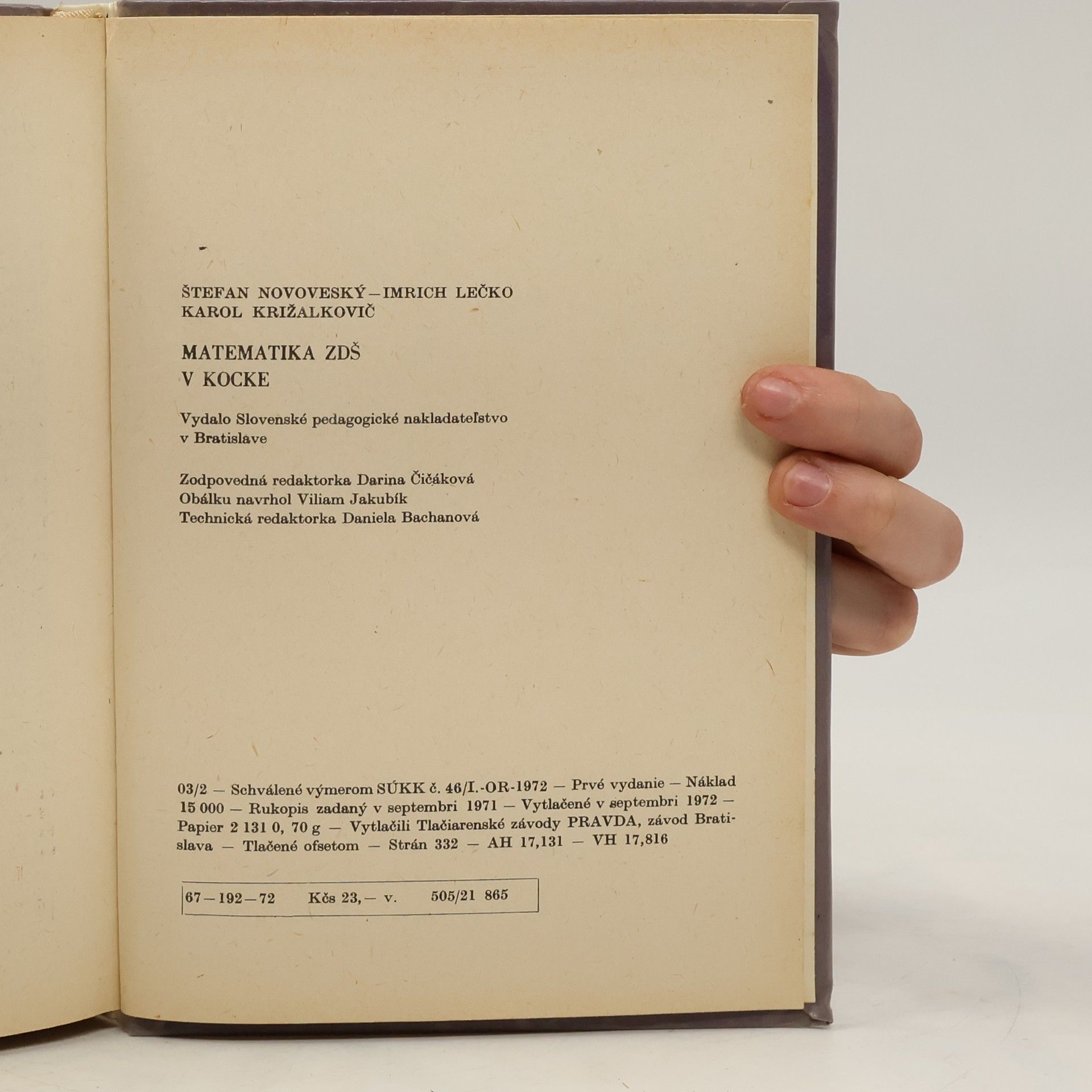 Skladem máme celkem 2ks knihy Matematika ZDŠ v kocke (1972).