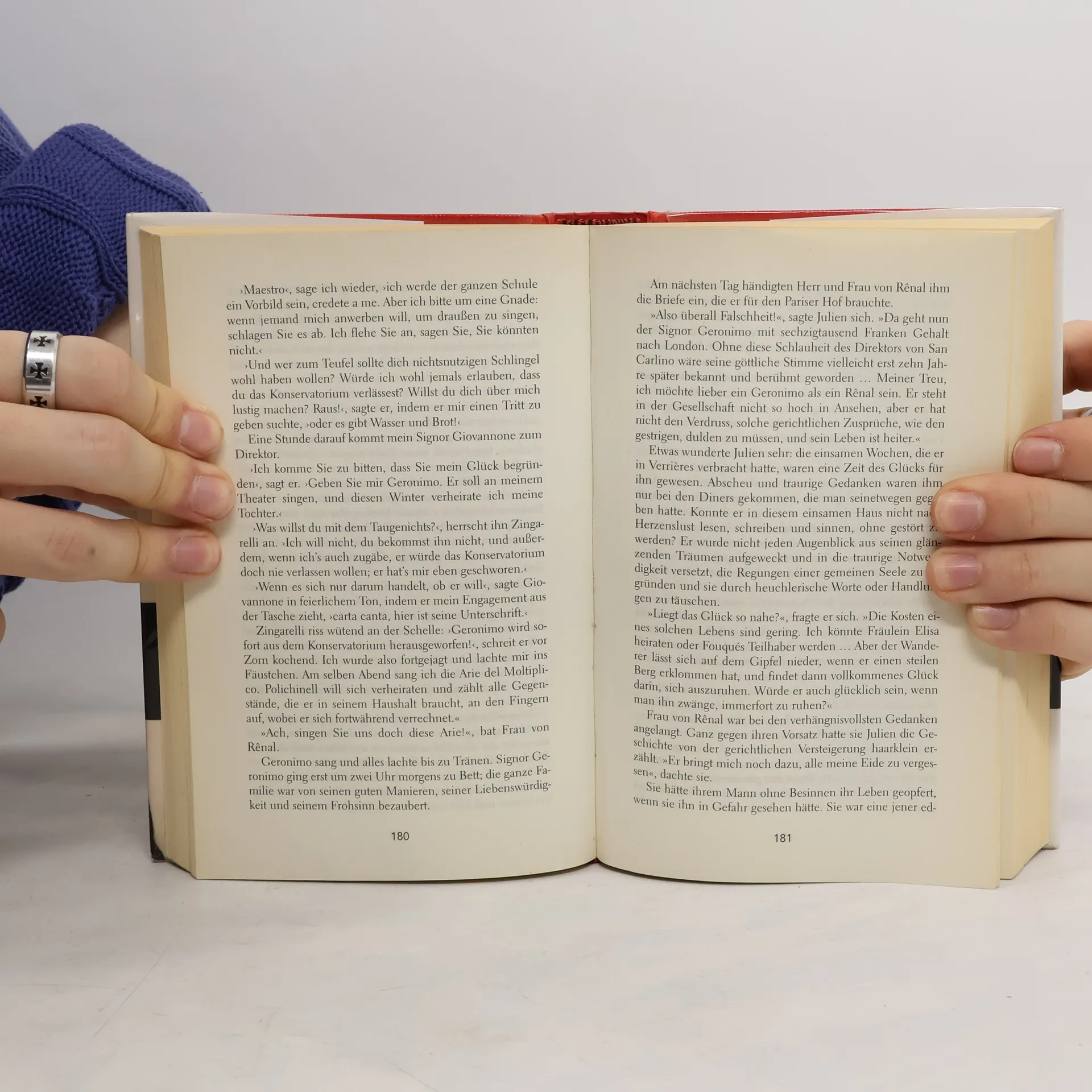 Ein junger Mann will sein Glück machen. Stendhals Roman schildert den steinigen Weg des begabten Handwerkersohns Julien Sorel bei seinem gesellschaftlichen Aufstieg. nur gewitzte Verstellung hilft ihm sich im Spannungsfeld von Rot (Militär) und Schwarz (Klerus) zu behaupten. Zwei Frauen, Mathilde und die Madame de Rênal, ebnen Sorel den Weg ins Großbürgertum im Frankreich der 1820er Jahre. Doch die Sache geht nicht gut aus. 'Rot und Schwarz' blickt mit unbestechlicher Klarheit auf die widersprüchliche Natur des Menschen.