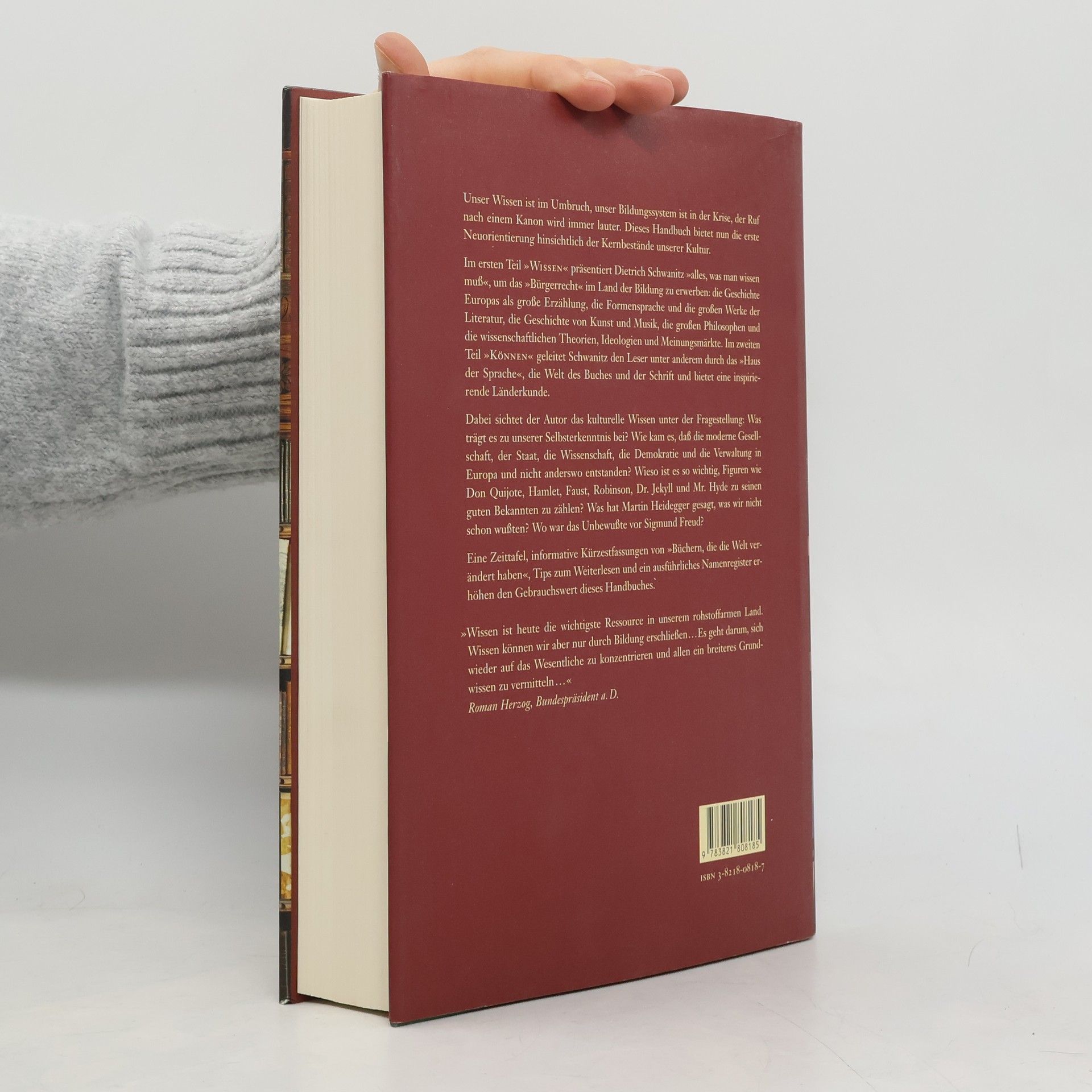 Ein Bildungskanon, der aufzeigt, was wesentlich ist. Schwanitz hat unser Allgemeinwissen durchleuchtet und unser kulturelles Gedächtnis neu ausgerichtet. Er beseitigt die Barrieren, die vielen den Zugang zu unserer Kultur versperren, und unterdrückt jeden Bildungsdünkel. In Zeiten eines Bildungssystems in der Krise wird der Ruf nach einem Kanon lauter. Dieses Handbuch bietet eine Neuorientierung zu den Kernbeständen unserer Kultur. Im ersten Teil „Wissen“ präsentiert Schwanitz alles, was man wissen muss, um das „Bürgerrecht“ im Land der Bildung zu erwerben: die große Erzählung der europäischen Geschichte, die Formensprache und bedeutende literarische Werke, Kunst- und Musikgeschichte, Philosophen sowie wissenschaftliche Theorien und Ideologien. Der zweite Teil „Können“ führt den Leser durch das „Haus der Sprache“, die Welt des Buches und der Schrift und bietet inspirierende Länderkunde. Schwanitz fragt, was unser kulturelles Wissen zur Selbsterkenntnis beiträgt und untersucht die Ursprünge moderner Gesellschaften in Europa. Er beleuchtet die Bedeutung bekannter literarischer Figuren und bietet informative Zusammenfassungen von „Büchern, die die Welt verändert haben“. Eine Zeittafel, Tipps zum Weiterlesen und ein ausführliches Namenregister erhöhen den Nutzen dieses Handbuchs.