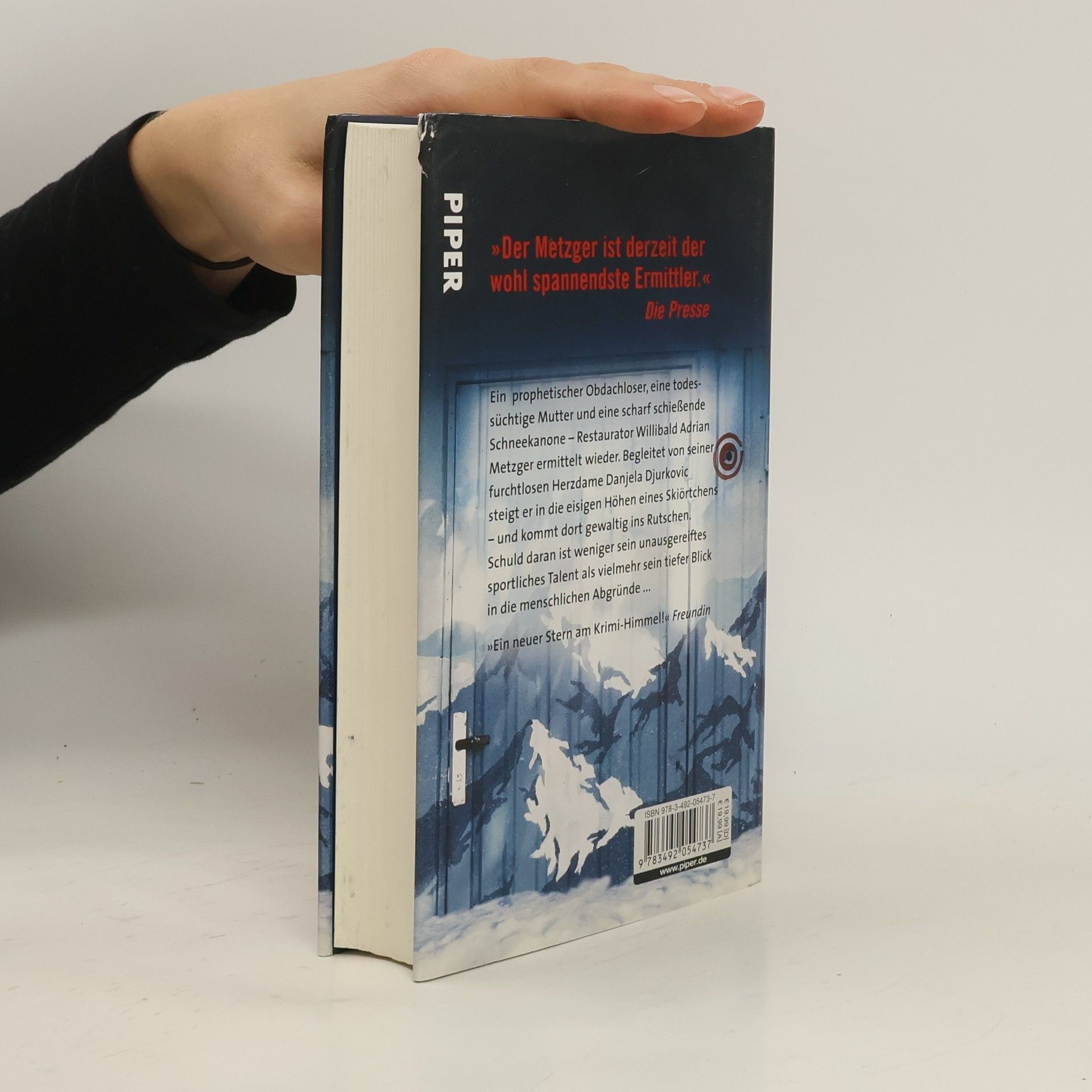 Eisig ist es in dem Park. Trotzdem wird es Willibald Adrian Metzger heiß und kalt. Vor aller Augen droht ein Mädchen zu ersticken. Erst ein rotbärtiger Obdachloser rettet der Kleinen das Leben und verschwindet murmelnd mit den Worten 'Jetzt geht das Sterben wieder los, es geht wieder los' zwischen den Sträuchern. Noch in derselben Nacht behält er mit seiner Prophezeiung recht: Eine Frau springt in den Abgrund, ein Mann erfriert in einer Busstation, und dem Metzger wird von seiner Danjela ein erholsamer Zwangsurlaub verordnet – klarerweise genau dort, wohin die einzige Spur führt: in ein kleines idyllisches Skiörtchen. Von Idylle kann allerdings keine Rede sein. Denn alles, was es für den Metzger dort zu holen gibt, ist der Tod