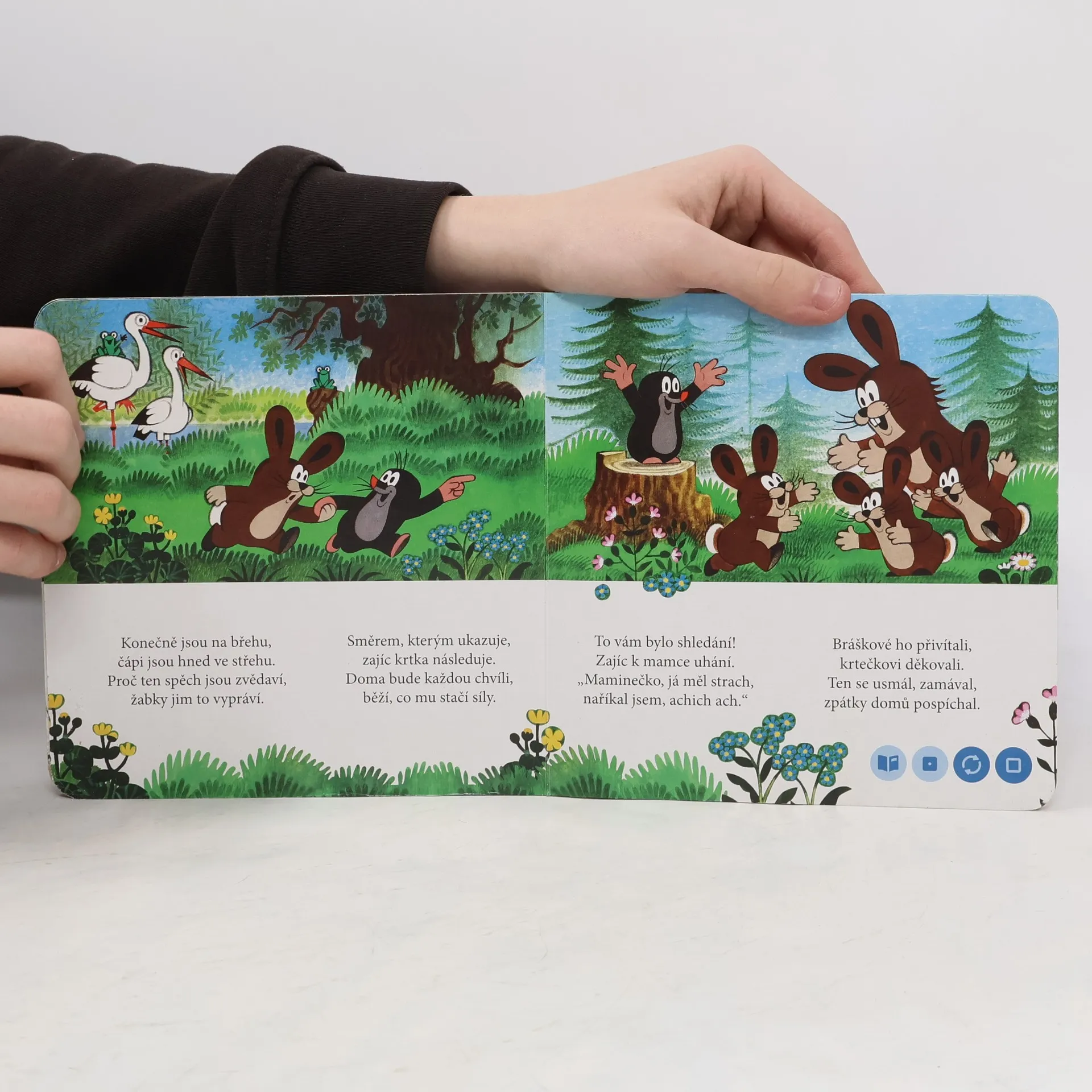 Nádherné ilustrace Zdeňka Milera zavedou děti za krtkem a jeho kamarády. Nejprve krtek pomůže se stavbou nového domku, který si vysnila myška, potom zachrání ztraceného zajíce a nakonec se vydá na výlet, kde ho překvapí medvědi. Krtek je zkrátka kamarád, se kterým rozhodně není nuda.