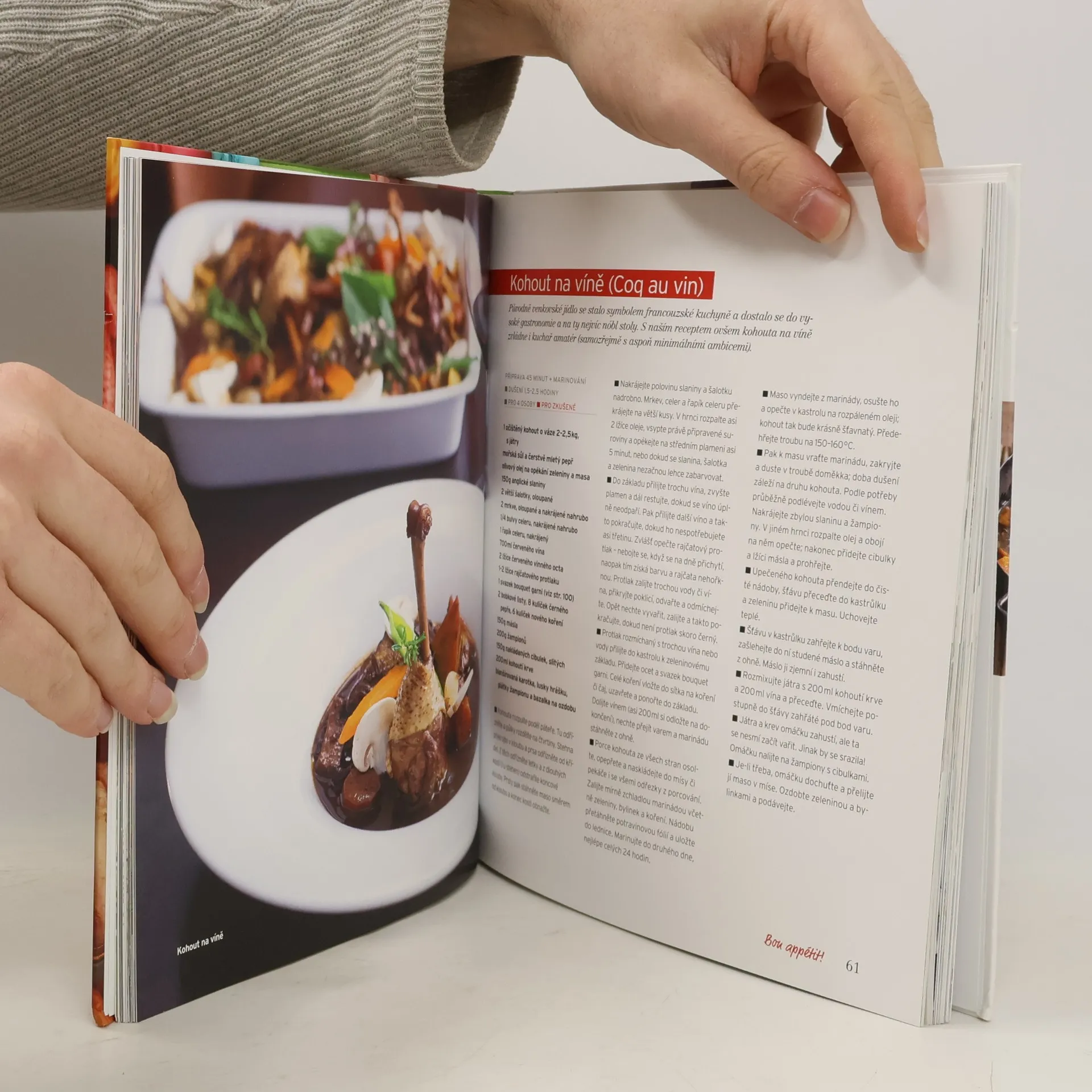 Časopis Apetit uvedl na trh novou edici kuchařek zaměřenou na mezinárodní kuchyně. Po kuchařce věnované italské kuchyni je tady další přírůstek - kuchařka plná francouzských lahůdek a delikates. Kniha s názvem Bon appétit aneb Lekce francouzské kuchyně představí všechny zásadní recepty. Seznamte se s královnou všech kuchyní! Kniha je rozdělena do sedmi kapitol. V oddílu Dobré ráno najdete návod na výrobu pravé francouzské bagety či máslového croissantu. V kapitole Na malý hlad hledejte inspiraci na saláty, slané koláče a další rychlá jídla, která si vychutnáte jako rychlý oběd nebo lehkou večeři. Oproti tomu v Noblesní Paříži najdete ta nejvyhlášenější jídla francouzské haute cuisine jako je kohout na víně nebo šneci. Kapitola Francouzský venkov vás naučí využívat méně známé druhy mas a zeleniny - jinými slovy vařit z toho, co dvůr zrovna dá. Vydáte se s námi i na ryby a mořské plody na středomořské pobřeží, na sýry do Alp i do cukrárny na sladkosti (těšte se na crepes Suzette, meringue s levandulí, makronky, creme brulee, třešňový clafoutis, čokoládový fondant, tarte tatin…) Každá kapitola je uvedena servisní dvoustránkou, kde se dozvíte, jak správně nakupovat a použít francouzské suroviny (od sýrů až po víno) a prozradíme i tipy, jak jíst a žít jako Francouzi.