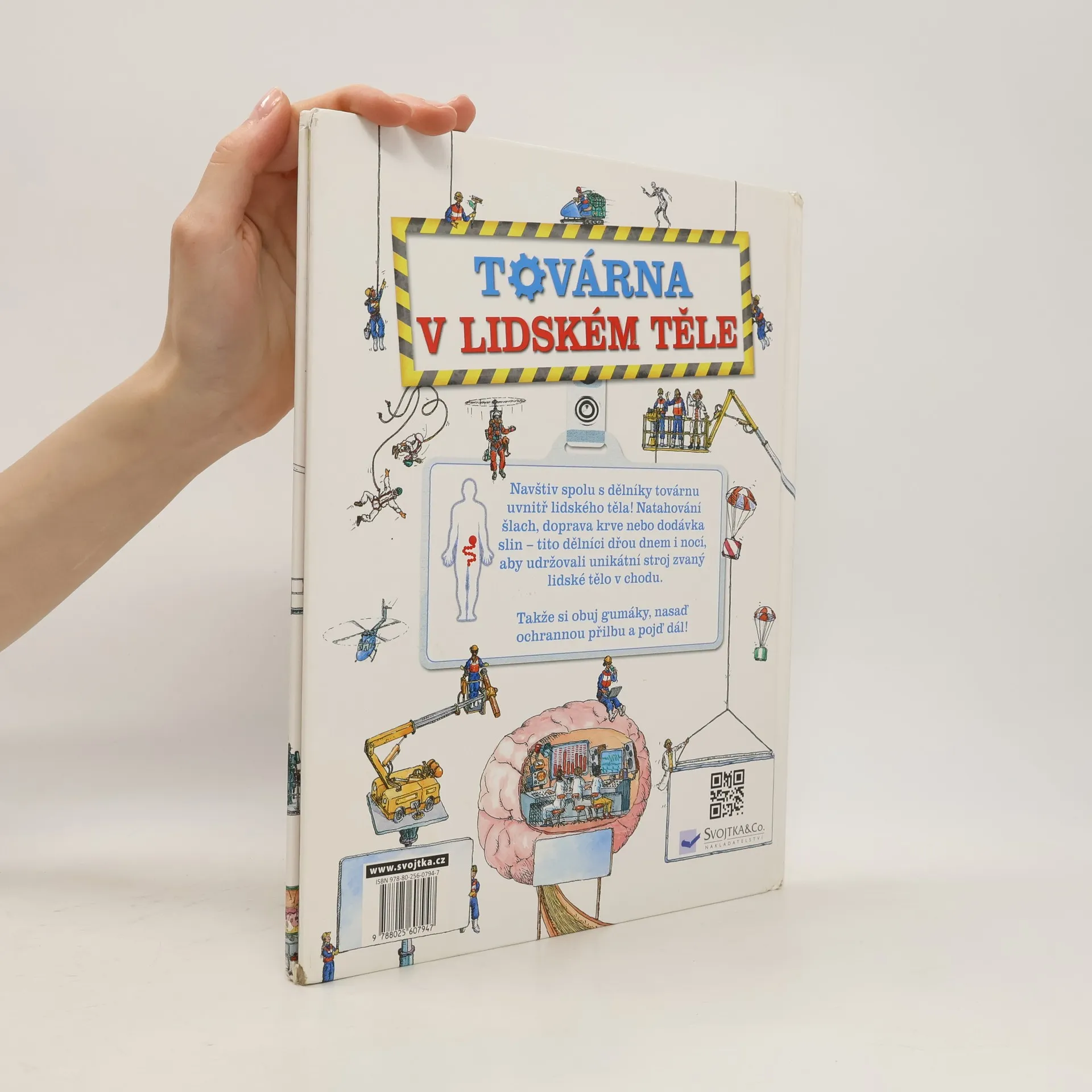 Představ si, že naše tělo je obrovská továrna. Občas je potřeba utáhnout šrouby uvnitř hlavy nebo natáhnout šlachy... Navštiv takovou továrnu s námi. Neúnavní "dělníci" v ní dopravují krev, dodávají sliny, musí pracovat dnem i nocí, aby tento mimořádný stroj - lidské tělo - udrželi v chodu.Takže, obuj si holínky, nasaď ochrannou přilbu a pojď dál! Jen tak se dozvíš, jak lidské tělo vlastně funguje