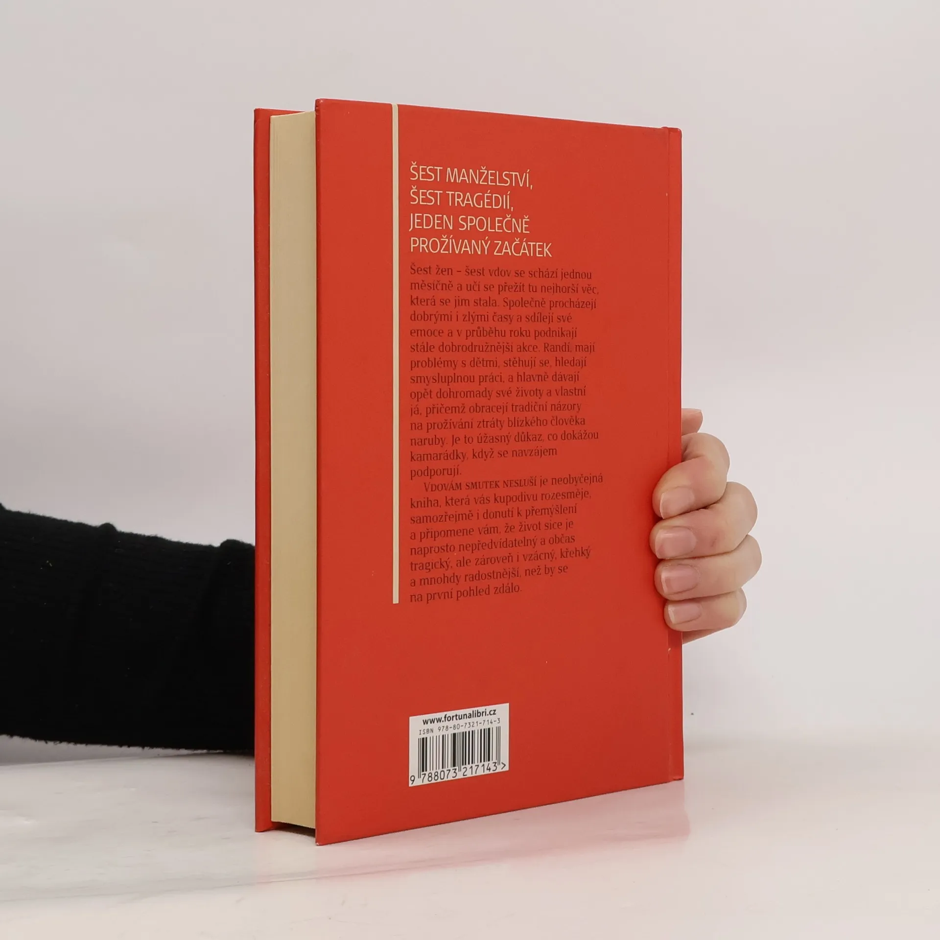 Šest manželství, šest tragédií, jeden společně prožívaný začátek Šest žen – šest vdov se schází jednou měsíčně a učí se přežít tu nejhorší věc, která se jim stala. Společně procházejí dobrými i zlými časy a sdílejí své emoce a v průběhu roku podnikají stále dobrodružnější akce. Randí, mají problémy s dětmi, stěhují se, hledají smysluplnou práci, a hlavně dávají opět dohromady své životy a vlastní já, přičemž obracejí tradiční názory na prožívání ztráty blízkého člověka naruby. Je to úžasný důkaz, co dokážou kamarádky, když se navzájem podporují. Vdovám smutek nesluší je neobyčejná kniha, která vás kupodivu rozesměje, samozřejmě i donutí k přemýšlení a připomene vám, že život sice je naprosto nepředvídatelný a občas tragický, ale zároveň i vzácný, křehký a mnohdy radostnější, než by se na první pohled zdálo.