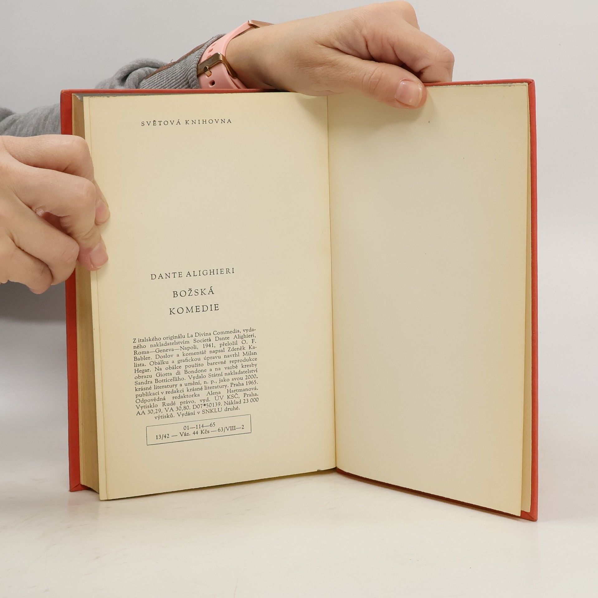 Velkoryse rozvržená Božská komedie, jedno ze základních literárních děl světové literatury, už osm století upoutává pozornost čtenářů na celém světě. Dante Alighieri (1265-1321), básník a učenec, který mimo jiné stojí u základů spisovného italského jazyka, shrnul ve svém nejvýznamnějším, neobyčejně důmyslně komponovaném díle veškeré vědění své doby. Báseň je postavena na základním principu čísla tři: skládá se ze tří částí Pekla, Očistce a Ráje, je napsána v sugestivních tercínách.