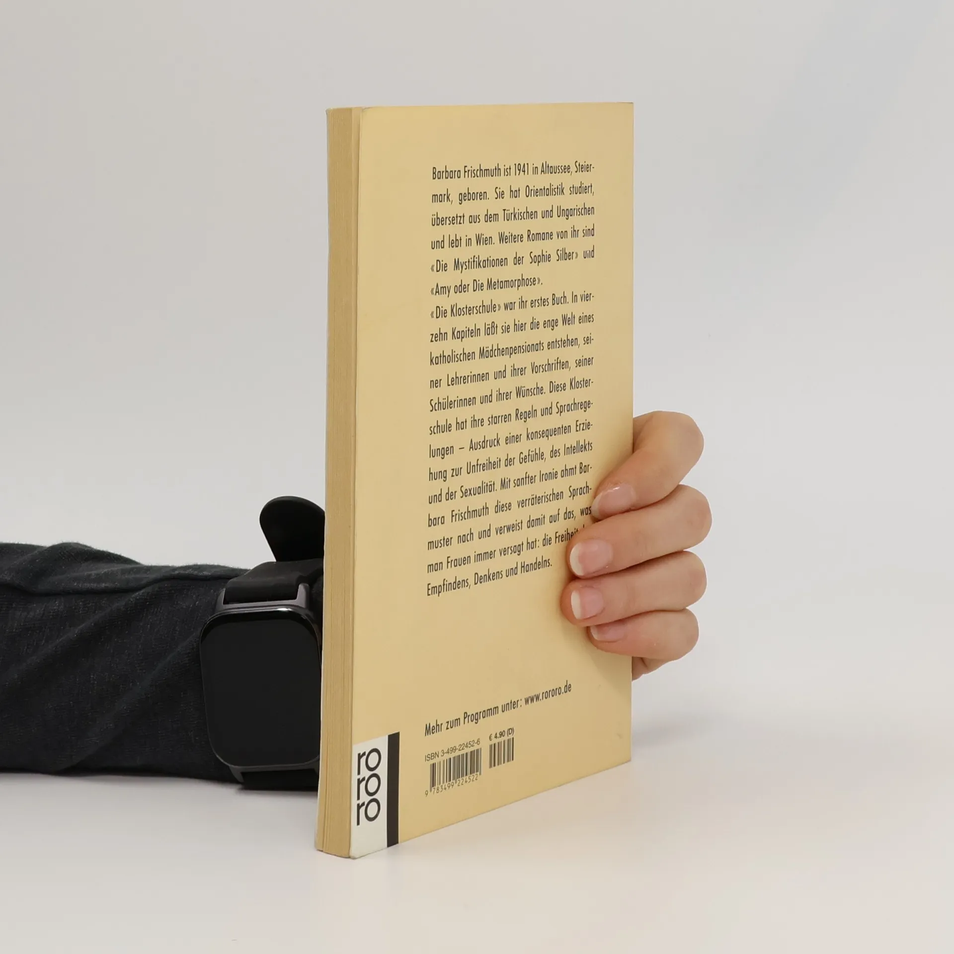 Barbara Frischmuth ist 1941 in Altaussee, Steiermark, geboren. Sie hat Orientalistik studiert, übersetzt aus dem Türkischen und Ungarischen und lebt in Wien. Weitere Romane von ihr sind "Die Mystifikation der Sophie Silber" und "Amy oder die Metamorphose". "Die Klosterschule" war ihr erstes Buch. In 14 Kapiteln läßt sie hier die enge Welt eines katholischen Mädchenpensionats entstehen, seiner Lehrerin und ihrer Vorschriften, seiner Schülerin und ihrer Wünsche. Diese Klosterschule hat ihre starren Regeln und Sprachregelungen - Ausdruck einer konsequenten Erziehung zur Unfreiheit der Gefühle, des Intellekts und der Sexualität. Mit sanfter Ironie ahmt Barbara Frischmuth diese verräterischen Sprachmuster nach und verweist damit auf das, was man Frauen immer versagt hat: die Freiheit des Empfindens, Denkens und Handelns.