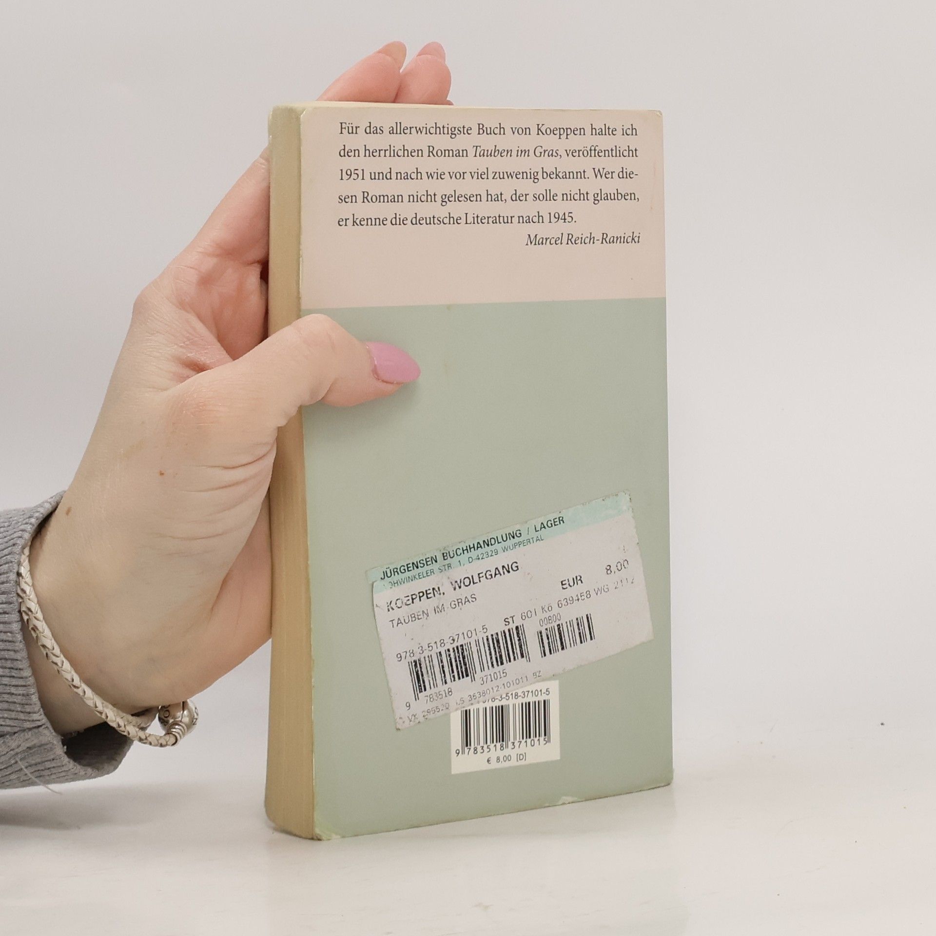 »Koeppens Werk besteht, wie das von allen Schriftstellern, aus Büchern von sehr unterschiedlicher Bedeutung. Ich schätze besonders den frühen Roman Eine unglückliche Liebe, den Roman Der Tod in Rom und das Fragment Jugend. Für das allerwichtigste Buch von Koeppen halte ich den herrlichen Roman Tauben im Gras, veröffentlicht 1951 und nach wie vor viel zu wenig bekannt. Wer diesen Roman nicht gelesen hat, der solle nicht glauben, er kenne die deutsche Literatur nach 1945.« Marcel Reich-Ranicki