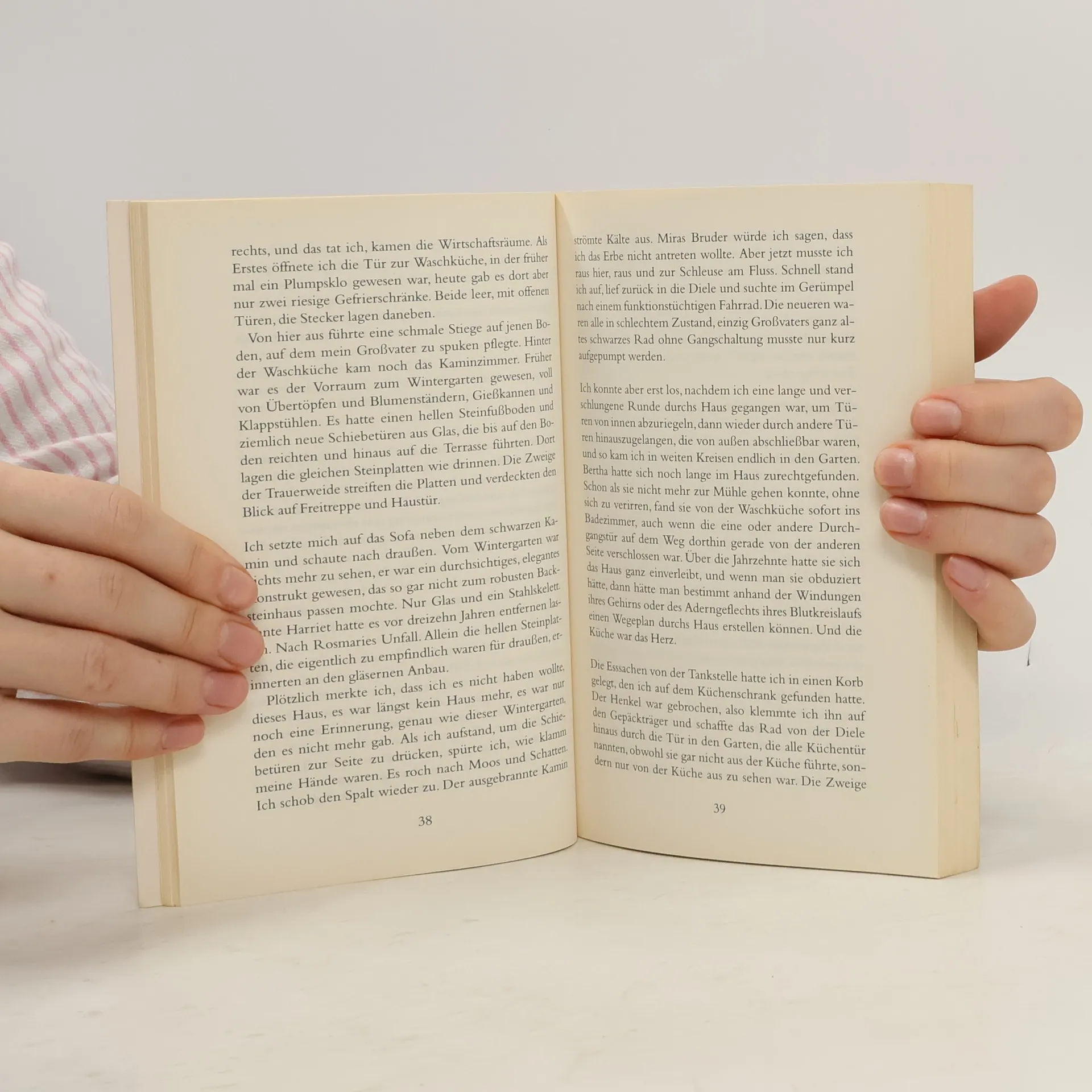 Als Bertha stirbt, erbt Iris das Haus. Nach vielen Jahren steht Iris wieder im alten Haus der Großmutter, wo sie als Kind in den Sommerferien mit ihrer Kusine Verkleiden spielte. Sie streift durch die Zimmer und den Garten, eine aus der Zeit gefallene Welt, in der rote Johannisbeeren über Nacht weiß und als konservierte Tränen eingekocht werden, in der ein Baum gleich zweimal blüht, Dörfer verschwinden und Frauen aus ihren Fingern Funken schütteln. Doch der Garten ist inzwischen verwildert. Nachdem Bertha vom Apfelbaum gefallen war, wurde sie erst zerstreut, dann vergesslich, und schließlich erkannte sie nichts mehr wieder, nicht einmal ihre drei Töchter. Iris bleibt eine Woche allein im Haus. Sie weiß nicht, ob sie es überhaupt behalten will. Sie schwimmt in einem schwarzen See, bekommt Besuch, küsst den Bruder einer früheren Freundin und streicht eine Wand an. Während sie von Zimmer zu Zimmer läuft, tastet sie sich durch ihre eigenen Erinnerungen und ihr eigenes Vergessen: Was tat ihr Großvater wirklich, bevor er in den Krieg ging? Welche Männer liebten Berthas Töchter? Wer aß seinen Apfel mitsamt den Kernen? Schließlich gelangt Iris zu jener Nacht, in der ihre Kusine Rosmarie den Unfall hatte: Was machte Rosmarie auf dem Dach des Wintergartens? Und wollte sie Iris noch etwas sagen? Iris ahnt, dass es verschiedene Spielarten des Vergessens gibt. Und das Erinnern ist nur eine davon.