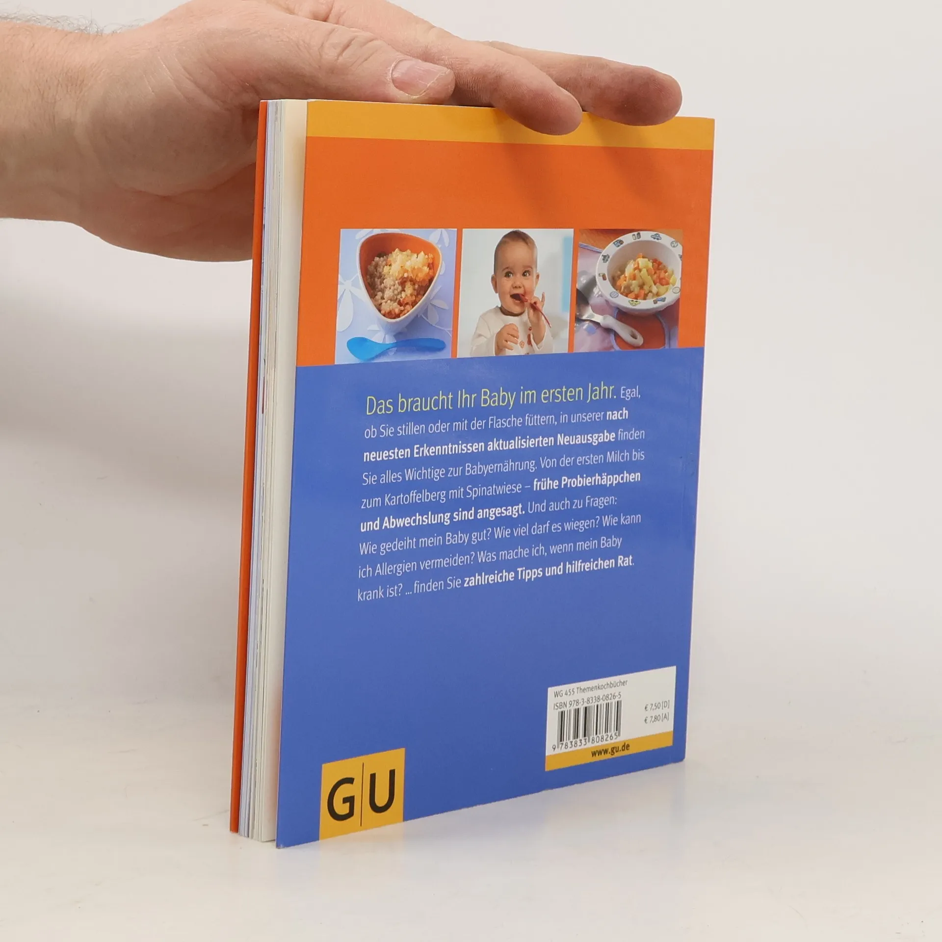 Nach neuesten Erkenntnissen und Empfehlungen überarbeitete Nachauflage von Kochen für Babys von 2004 (100.211 verk. Ex. lt. MC). Neues gibt es z. B. auf dem Gebiet der Allergie-Vorbeugung: hier sind Monotonie, Keimfreiheit und extrem späte Beikost kontraproduktiv. Frühe Probierhäppchen und Abwechslung sind nun angesagt. Die Autorin liefert hierfür zahlreiche Tipps und Rezeptideen und beantwortet wichtige Fragen wie: - Wie lange sollte ich stillen? - Bekommt mein Kind genug von allem? - Wie kann ich Allergien vermeiden und vorbeugen? Alles rund um die Babyernährung vom Tag der Geburt bis zum ersten Geburtstag des Kindes.