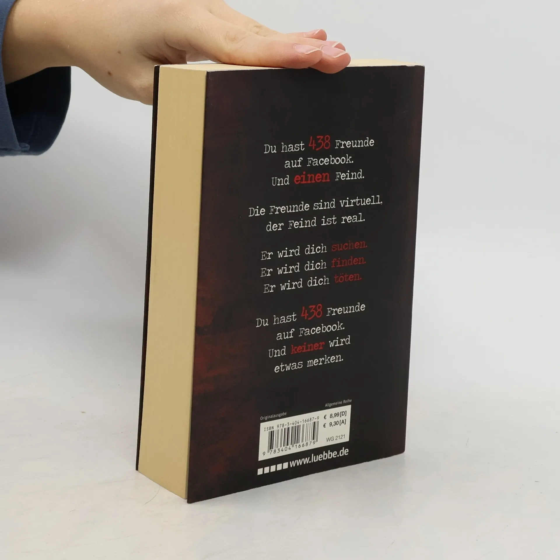 Du hast 438 Freunde auf Facebook.Und einen Feind. Die Freunde sind virtuell,der Feind ist real. Er wird Dich suchen.Er wird Dich finden.Er wird Dich töten. Du hast 438 Freunde auf Facebook. Und keiner wird etwas merken. Ein Killer, der wie ein Computervirus agiert: unsichtbar und allgegenwärtig. Er nennt sich der Namenlose, und seine Taten versetzen ganz Berlin in Angst und Schrecken. Hauptkommissarin Clara Vidalis und ihr Team sind in der Abteilung für Pathopsychologie ohnehin schon für die schweren Fälle zuständig, aber die Vorgehensweise dieses Verbrechers raubt selbst ihnen den Atem. Perfide und genial, lenkt er die Ermittler stets auf die falsche Fährte. Und erst allmählich begreift die Kommissarin, dass der Namenlose sein grausames Spiel nicht mit der Polizei spielen will, sondern nur mit einem Menschen: mit ihr, Clara Vidalis. Während die Ermittler noch verzweifelt versuchen, die Identität des Killers aufzudecken, startet der Medienmogul Albert Torino eine neue Casting-Show. Und es gibt jemanden, der diese Show für seine eigenen, brutalen Zwecke nutzen wird: der Namenlose.
