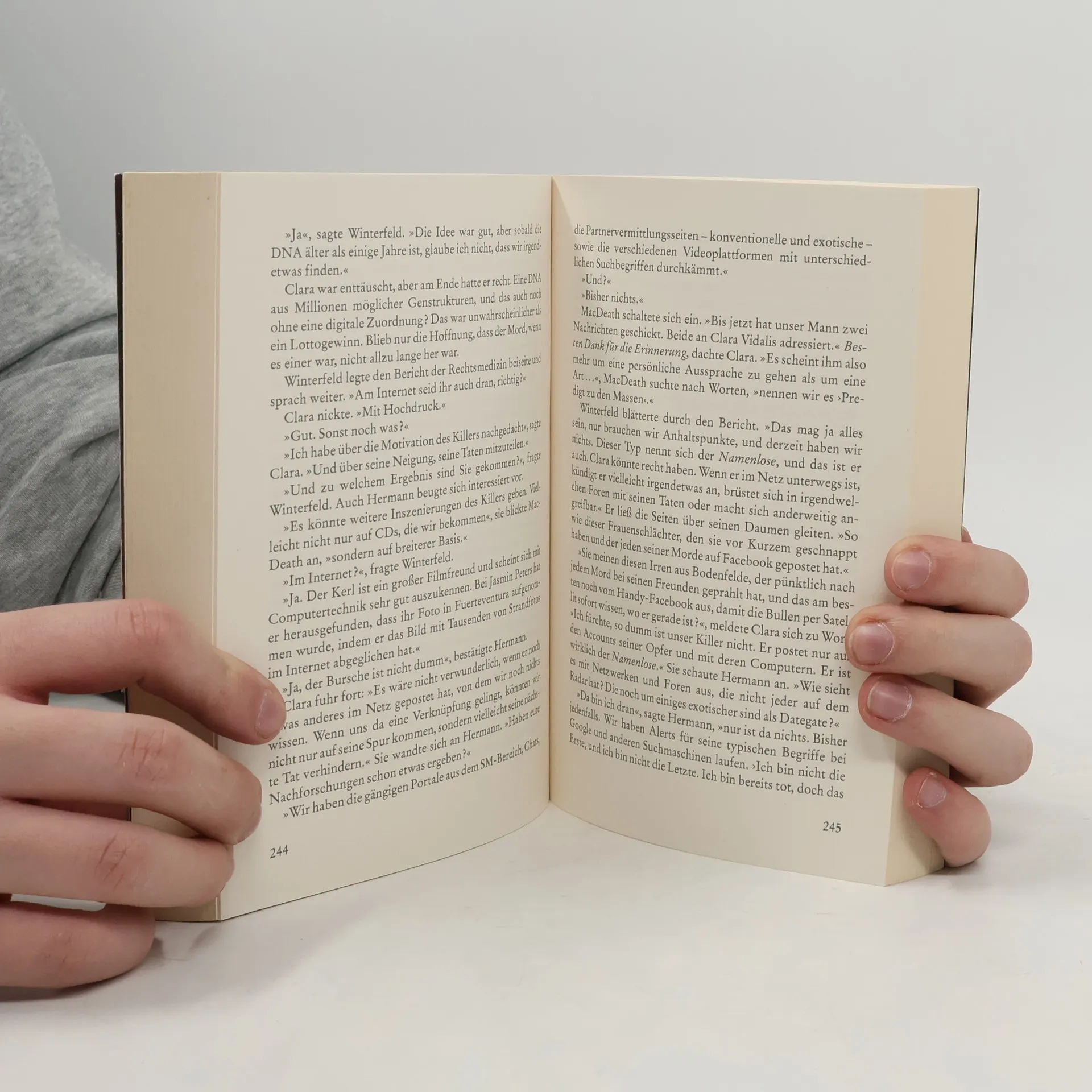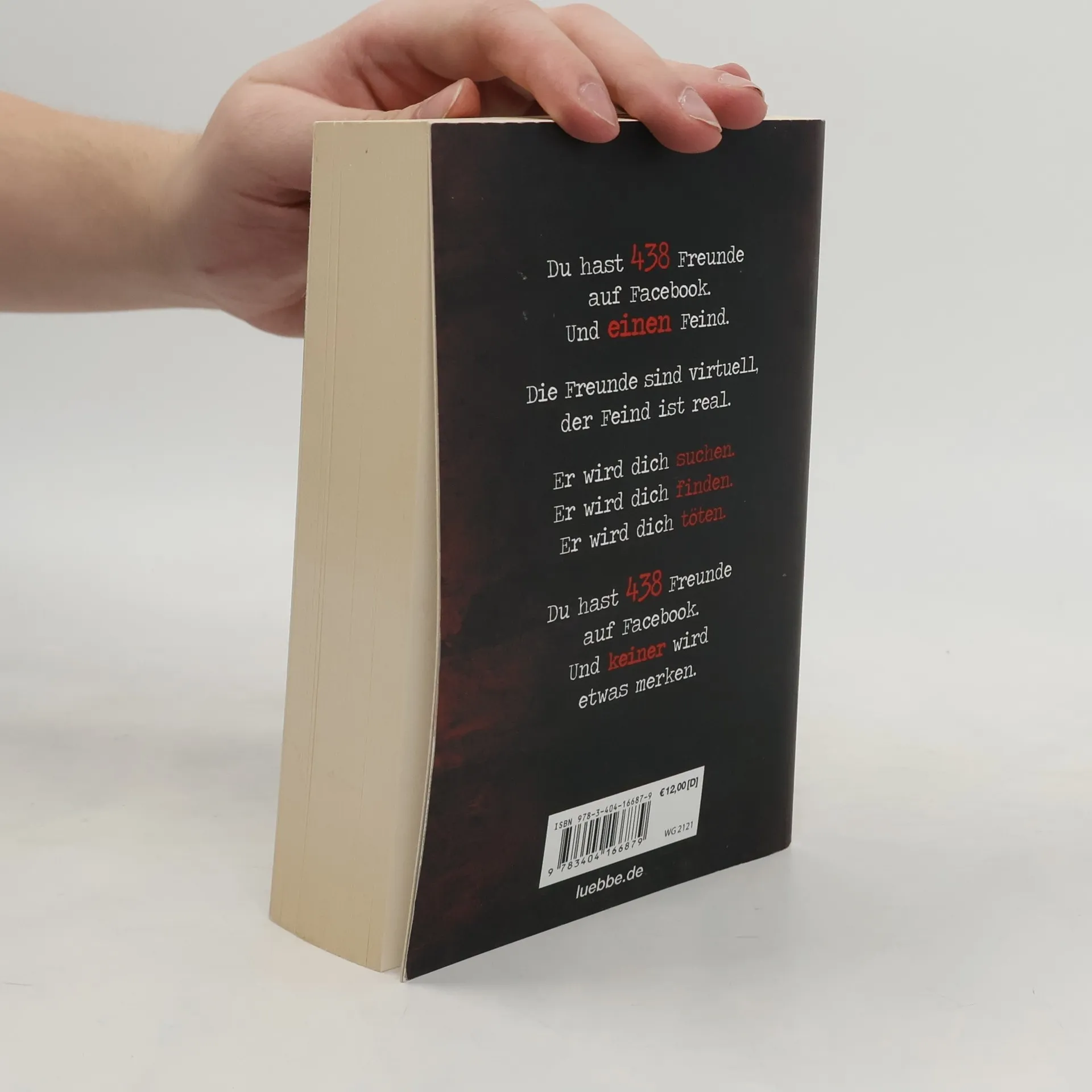 Du hast 438 Freunde auf Facebook.Und einen Feind. Die Freunde sind virtuell,der Feind ist real. Er wird Dich suchen.Er wird Dich finden.Er wird Dich töten. Du hast 438 Freunde auf Facebook. Und keiner wird etwas merken. Ein Killer, der wie ein Computervirus agiert: unsichtbar und allgegenwärtig. Er nennt sich der Namenlose, und seine Taten versetzen ganz Berlin in Angst und Schrecken. Hauptkommissarin Clara Vidalis und ihr Team sind in der Abteilung für Pathopsychologie ohnehin schon für die schweren Fälle zuständig, aber die Vorgehensweise dieses Verbrechers raubt selbst ihnen den Atem. Perfide und genial, lenkt er die Ermittler stets auf die falsche Fährte. Und erst allmählich begreift die Kommissarin, dass der Namenlose sein grausames Spiel nicht mit der Polizei spielen will, sondern nur mit einem Menschen: mit ihr, Clara Vidalis. Während die Ermittler noch verzweifelt versuchen, die Identität des Killers aufzudecken, startet der Medienmogul Albert Torino eine neue Casting-Show. Und es gibt jemanden, der diese Show für seine eigenen, brutalen Zwecke nutzen wird: der Namenlose.