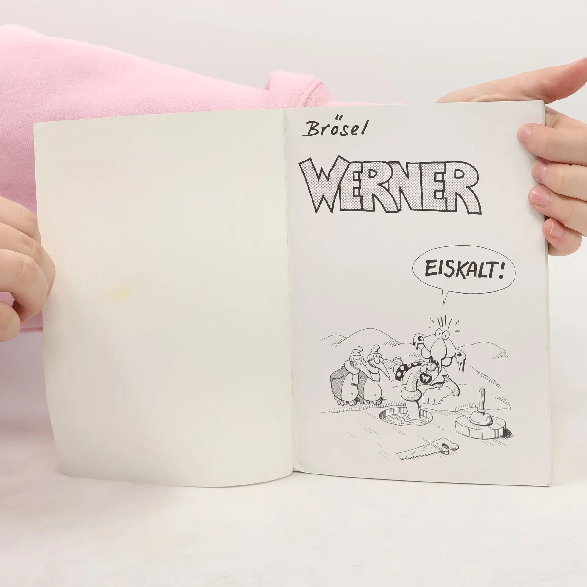 WERNER – EISKALT! Neuauflage in HDO steht an! Nach heißen und eiskalten Zeiten für Werners Zeichner Brösel alias Rötger Feldmann drückt er im eigenen Bröseline Verlach jetzt wieder voll auf die Tube! Nach dem Verlachsdebüt WERNER – WAT NU!? (Band 13, 2018) – dem ersten Werner-Band seit 14 Jahren – geht’s nun mit den ersten sechs Bänden weiter – und zwar in HDO (High Definition Offset)! So gut sah Werner noch nie aus! Ab Januar 2019 erscheint monatlich ein neuer alter Band der Reihe. In WERNER – EISKALT! (1985) sagt uns Werner endlich mal, was was taucht, wie das Urheberrecht funktioniert, zeigt uns die beste Güllepumpe auffe Welt, erklärt uns Watt und Gema, stellt den Wurstblinker der Öffentlichkeit vor, zeigt, wie man Nieten gewinnt, was ein Auslaufmodell ist und wie Wassagen aussieht. Und... der größte Knaller seit Ben Huä – Das Rennen, die Wahnsinns-Geschichte mit – damals noch – ungeahnten Folgen. Da fehlt nix! Brösel: WERNER — EISKALT ! Bröseline Verlag ISBN 978-3-947626-03-8 Erscheinungstermin 26.04.2019