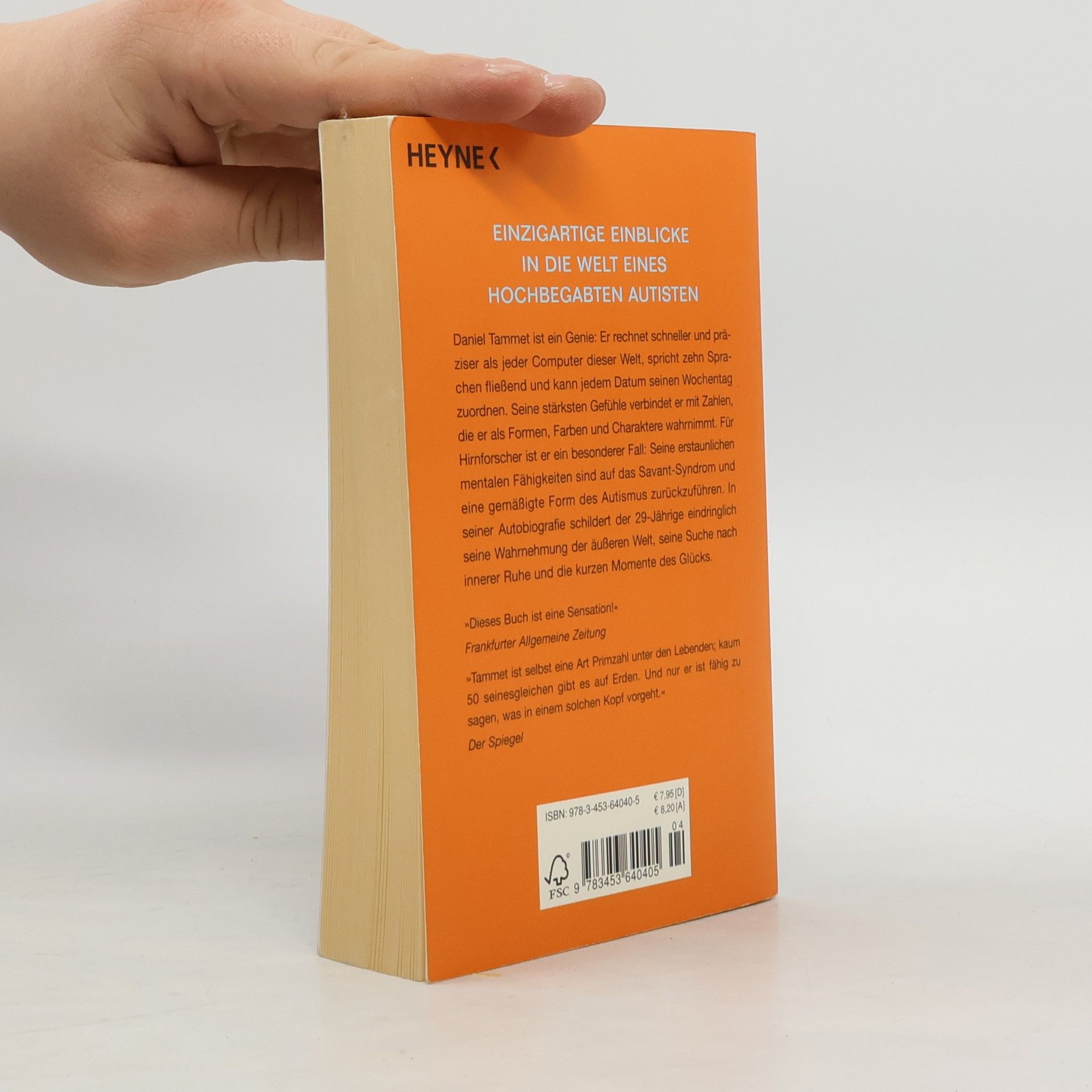 Eine einzigartige Innenansicht des Autismus und zugleich ein faszinierender Einblick in die Kraft des menschlichen Geistes Daniel Tammet ist ein Genie: Er rechnet schneller als jeder Computer dieser Welt und spricht zehn Sprachen. Zahlen nimmt er als Formen, Farben und Charaktere wahr. Für Hirnforscher ist er ein besonderer Fall: Seine erstaunlichen mentalen Fähigkeiten sind auf das Savant-Syndrom und eine gemäßigte Form des Autismus zurückzuführen. In seiner Autobiografie gibt der 29-Jährige Einblick in seine Wahrnehmung der äußeren Welt, seine Suche nach innerer Ruhe und die kurzen Momente des Glücks.