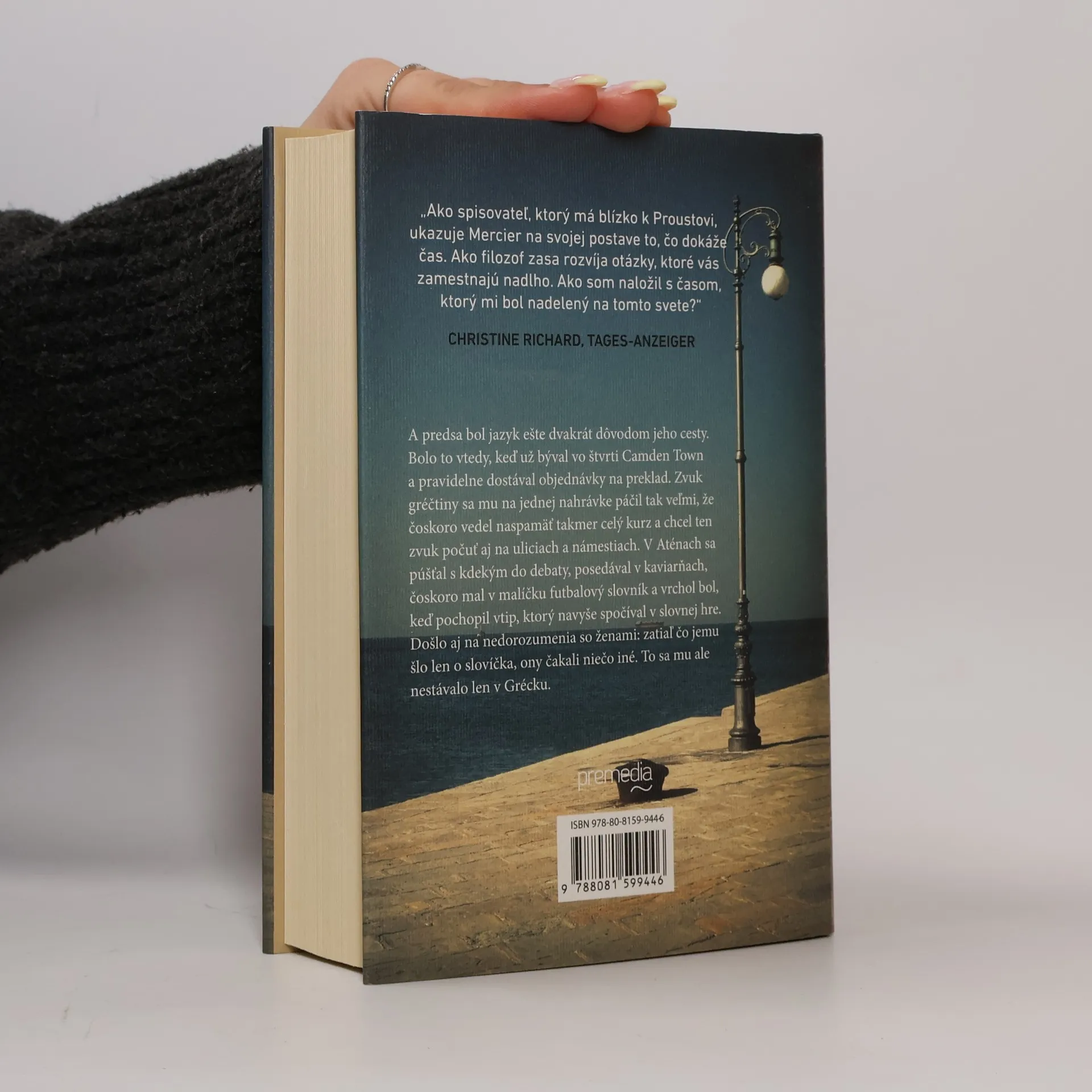 Simona Leylanda od detstva fascinujú jazyky. Proti vôli svojich rodičov sa stane prekladateľom a rozhodne sa postupne naučiť všetky jazyky Stredomoria. Z Londýna nasleduje svoju manželku Liviu do Terstu, kde zdedila vydavateľstvo. V meste významných literárnych osobností verí, že našiel ideálne miesto pre svoju prácu – až kým ho lekárska chyba nevyvedie z miery. No potom sa z domnelej katastrofy stane zlomový bod, ktorý mu umožní opäť úplne zmeniť svoj život. Pascal Mecier ani tentoraz nezaprel svoj neutíchajúci záujem o reflexiu hraničných situácií v živote človeka a o úlohu slova v nich. Jeho najnovší román je vyznaním lásky k slovu, ktoré má moc spustiť v ľudskej existencii tie najneočakávanejšie pohyby. Opäť sa mu podarilo napísať filozofický román, ktorý je rovnako dojímavý ako Nočný vlak do Lisabonu.