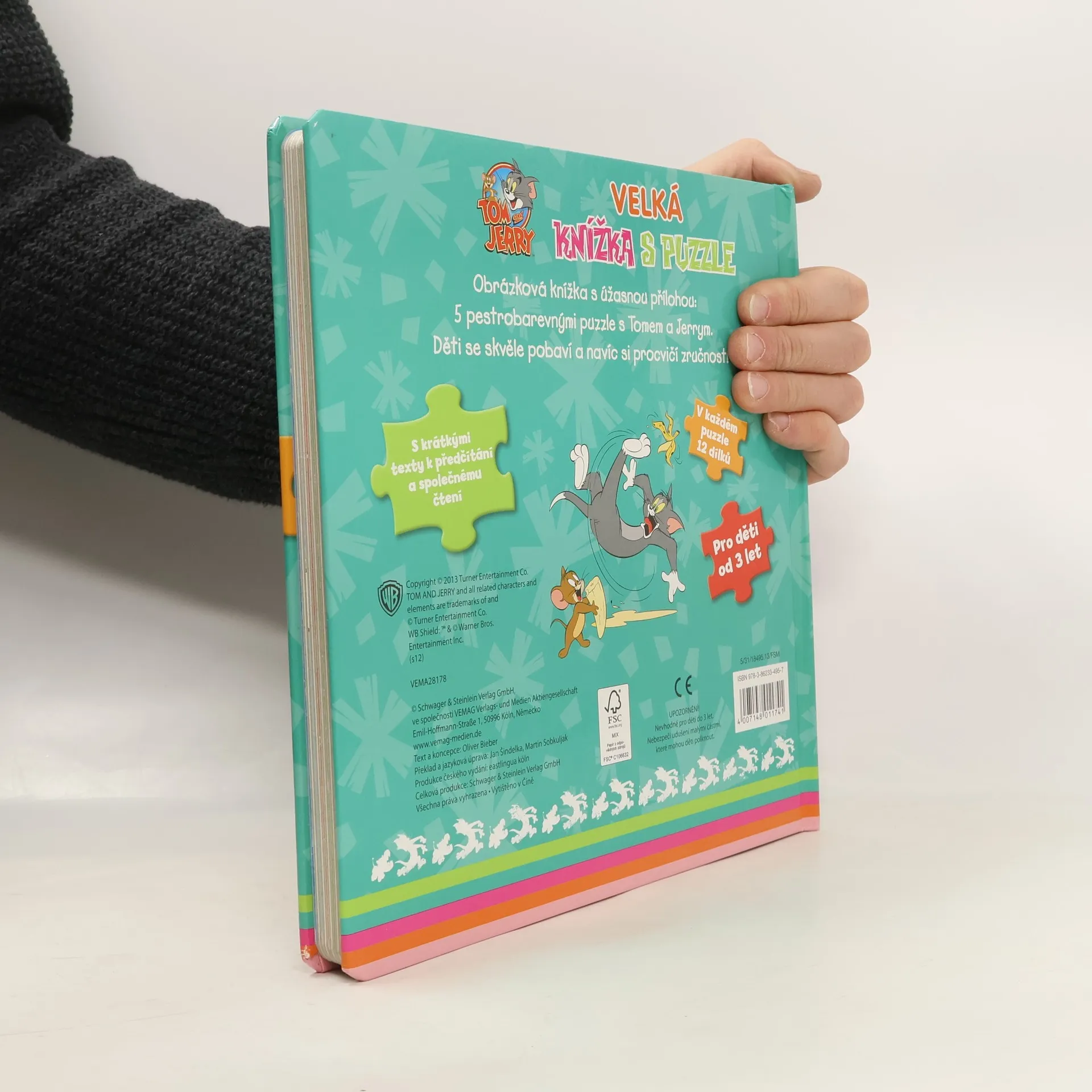 Velká knížka s puzzle - Tom & Jerry ... se spoustou veselých hádanek. Obrázková knížka s úžasnou přílohou: 5x pestrobarevné puzzle s Tomem a Jerrym. Děti se skvěle pobaví a navíc si procvičí zručnost. Nevhodné pro děti do 3 let. Nebezpečí udušení malými částmi puzzle, které mohou děti polknout Leporelo, rozměry 25,6 x 25,6 x 2,3 cm. Ilustrace, zn. Warner Bros. Entertainment Inc.