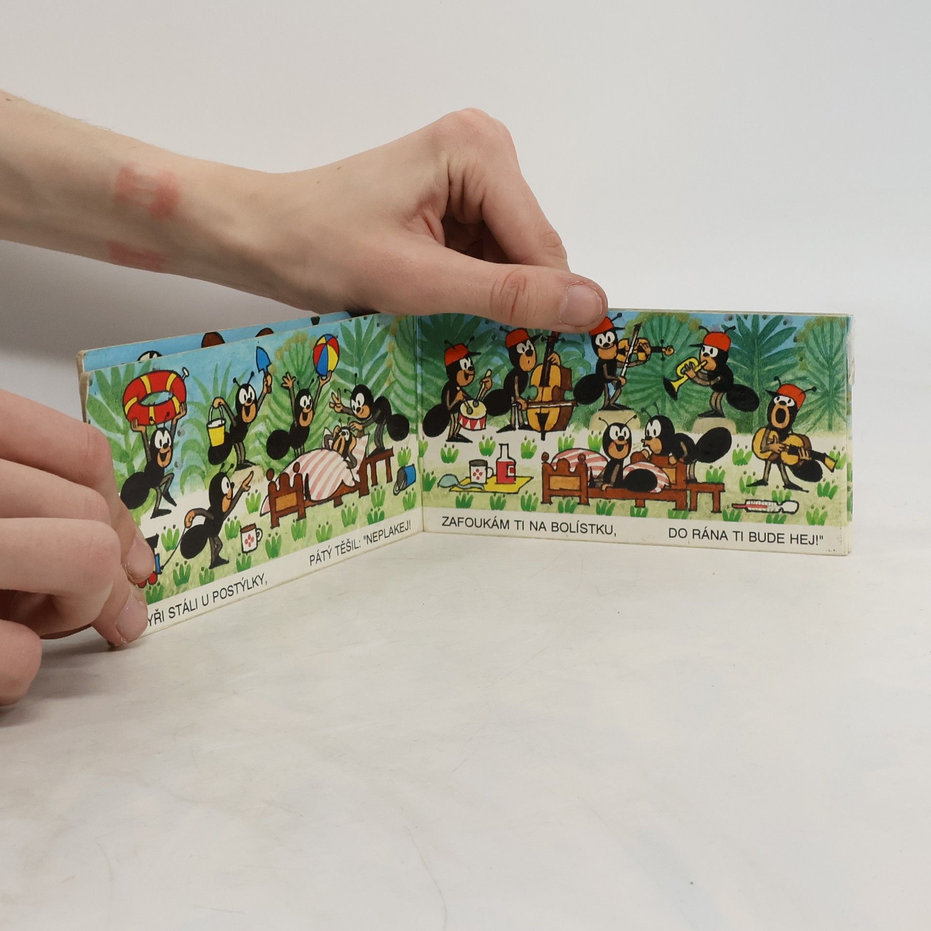 Veršovaný příběh s dobrým koncem o tom, jak polámaného mravenečka nevyléčí prášky mravenčího doktora, ale soucit a porozumění dobrých přátel, vychází jako oblíbené minileporelo ilustrované autorem Krtečka.