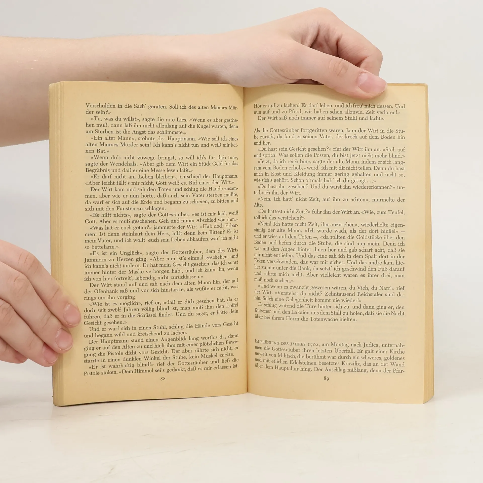 Die Welt ist aus den Fugen in diesem historisch-fantastischen Roman: Der Krieg zwischen August dem Starken und Karl XII. von Schweden hat Schlesien um 1700 im Würgegriff. Regimenter durchziehen das Land und üben erbarmungslose Lynchjustiz. Die Bauern, aber auch Banden von Räubern und Vagabunden kämpfen ums nackte Überleben. Ein christlicher Bischof bietet den Verfolgten letzte Zuflucht: In seinen Steinbrüchen und Schmelzöfen »stöhnen an Karren geschmiedet die Lebendig-Toten, die sich vor dem Galgen in die Hölle geflüchtet haben«. Zwei Männer, ein adeliger Deserteur und ein namenloser Vagabund, stehen am Scheideweg. Der Weg des ersten führt zur feindlichen schwedischen Armee, zu Kriegsruhm, Reichtum und zur schönen Maria Agneta, seiner Kusine. Der Weg des anderen führt in die Feuerhölle des Bischofs. Doch die Schicksale kreuzen und vertauschen sich. Der kunstvoll geometrische Aufbau dieses Plots gehört zu den ästhetisch beglückendsten Erfindungen des Mathematikers Perutz. Und in der Figur des namenlosen Vagabunden hat er eine Gestalt erschaffen, die in Charisma und Dämonie den berühmten Helden der schwarzen Romantik gleicht von Byrons Manfred bis zu Dumas' Grafen von Monte Christo.