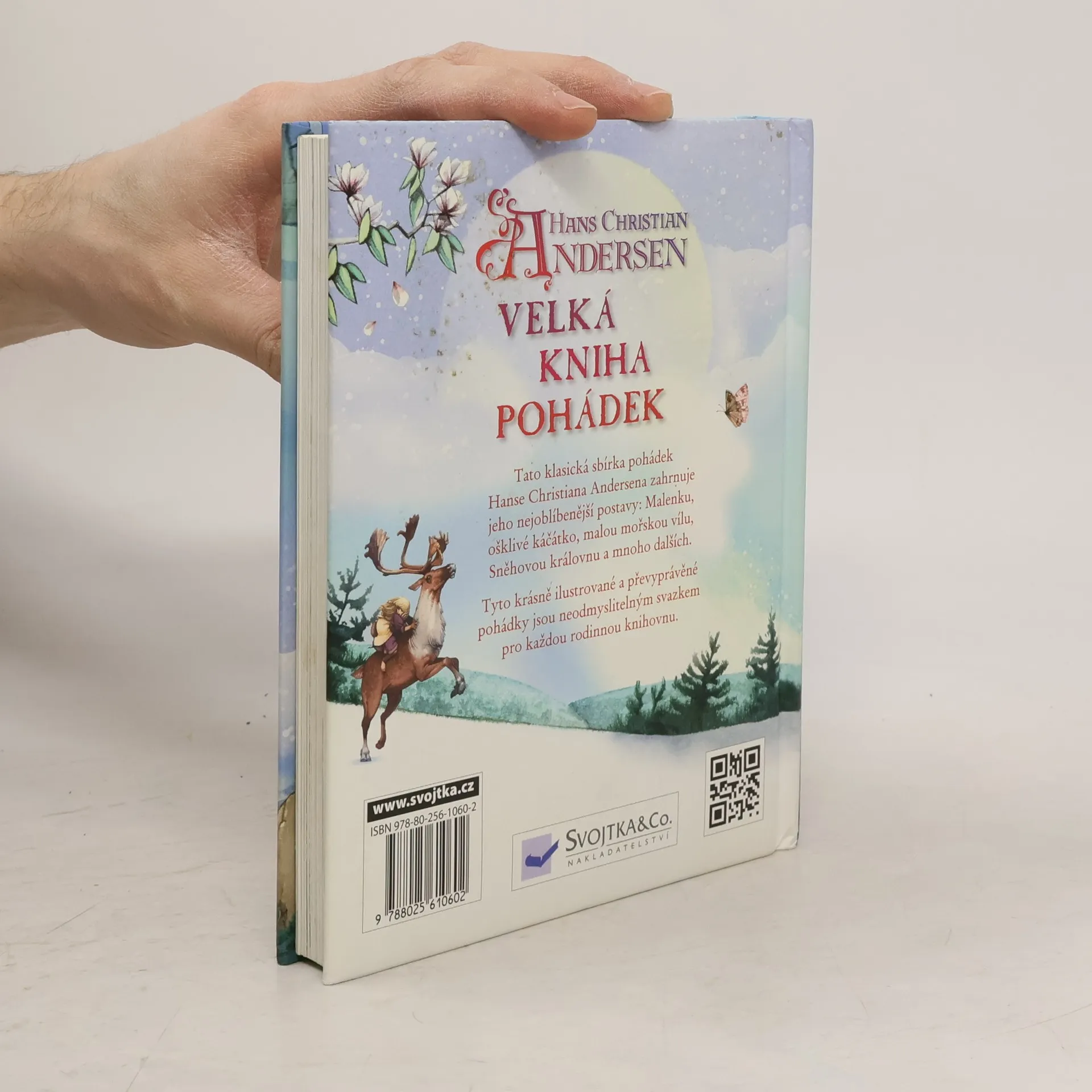 Princezna na hrášku, Císařovy nové šaty, O Malence, Ošklivé káčátko, Malá mořská víla, Císařův slavík, Létající truhla, Cínový vojáček, Divoké labutě, Smrček, Křesadlo, Sněhová královna - v této bohatě ilustrované pohádkové knížce najdete 12 nejznámějších příběhu od známého "pohádkáře" Hanse Christiana Andersena. Kromě toho se zde o tomto spisovateli i něco zajímavého dočtete. I jeho život sám byl totiž v mnoha ohledech jako pohádka: z chudáka se stal boháč, který po celý život sbíral zkušenosti, aby mohl vyprávět příběhy, jež ho proslavily.