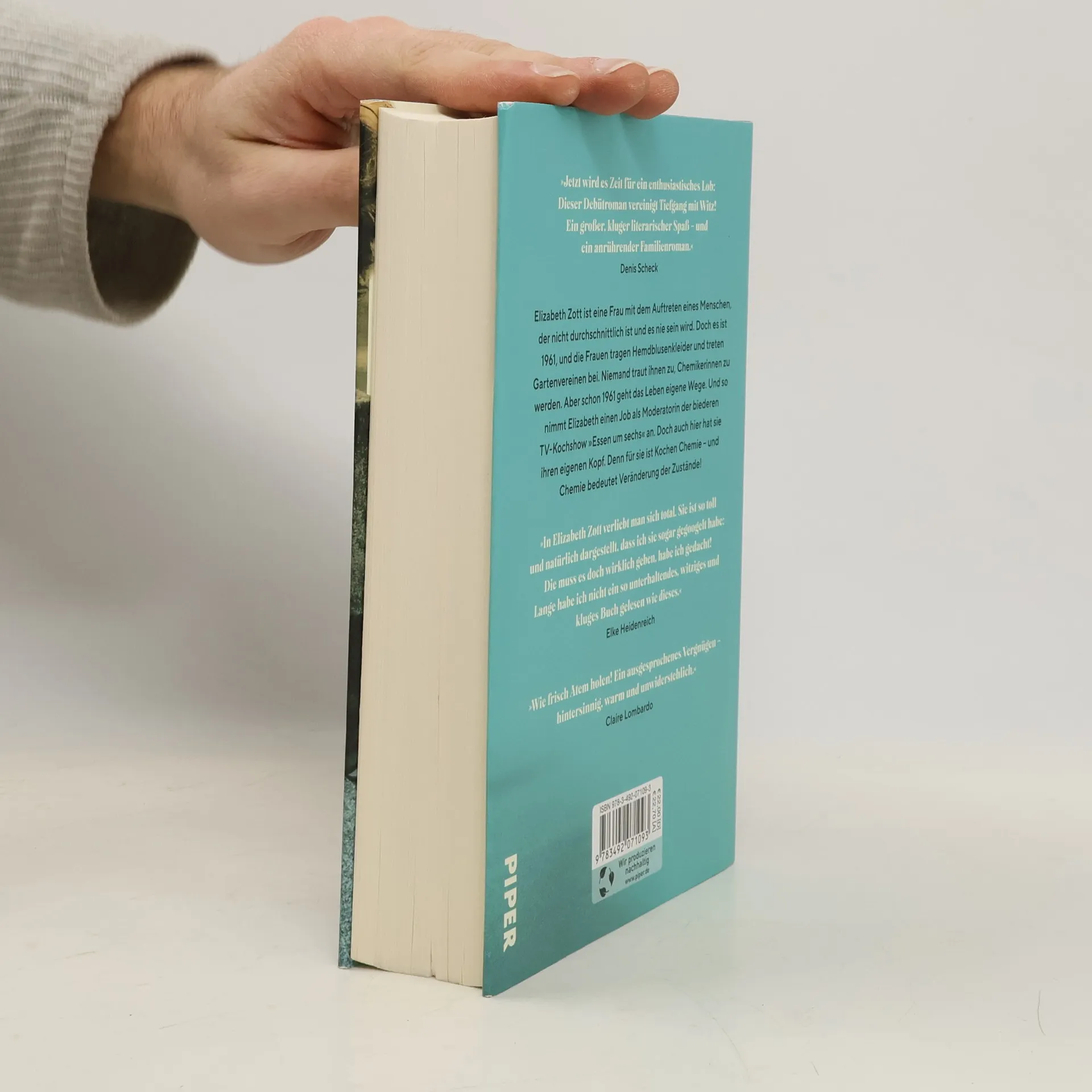 Etzt wird es Zeit für ein enthusiastisches Lob: Dieser Debütroman vereinigt Tiefgang mit Witz! Ein großer, kluger literarischer Spaß - und ein anrührender Familienroman.« Denis ScheckElizabeth Zott ist eine Frau mit dem Auftreten eines Menschen, der nicht durchschnittlich ist und es nie sein wird. Doch es ist 1961, und die Frauen tragen Hemdblusenkleider und treten Gartenvereinen bei. Niemand traut ihnen zu, Chemikerinnen zu werden. Aber schon 1961 geht das Leben eigene Wege. Und so nimmt Elizabeth einen Job als Moderatorin der biederen TV-Kochshow »Essen um sechs« an. Doch auch hier hat sie ihren eigenen Kopf. Denn für sie ist Kochen Chemie - und Chemie bedeutet Veränderung der Zustände!»In Elizabeth Zott verliebt man sich total. Sie ist so toll und natürlich dargestellt, dass ich sie sogar gegoogelt habe: Die muss es doch wirklich geben, habe ich gedacht! Lange habe ich nicht ein so unterhaltendes, witziges und kluges Buch gelesen wie dieses.« Elke Heidenreich»Wie frisch Atem holen! Ein ausgesprochenes Vergnügen - hintersinnig, warm und unwiderstehlich [Buchzentrum]