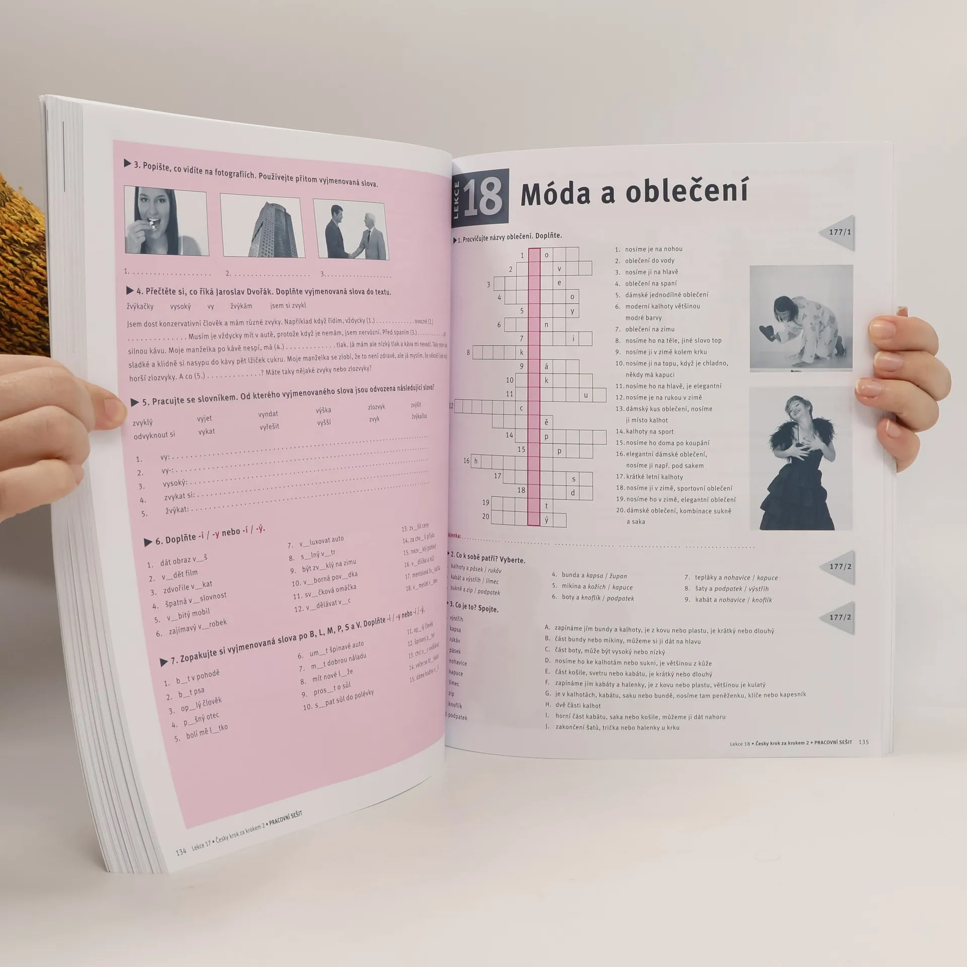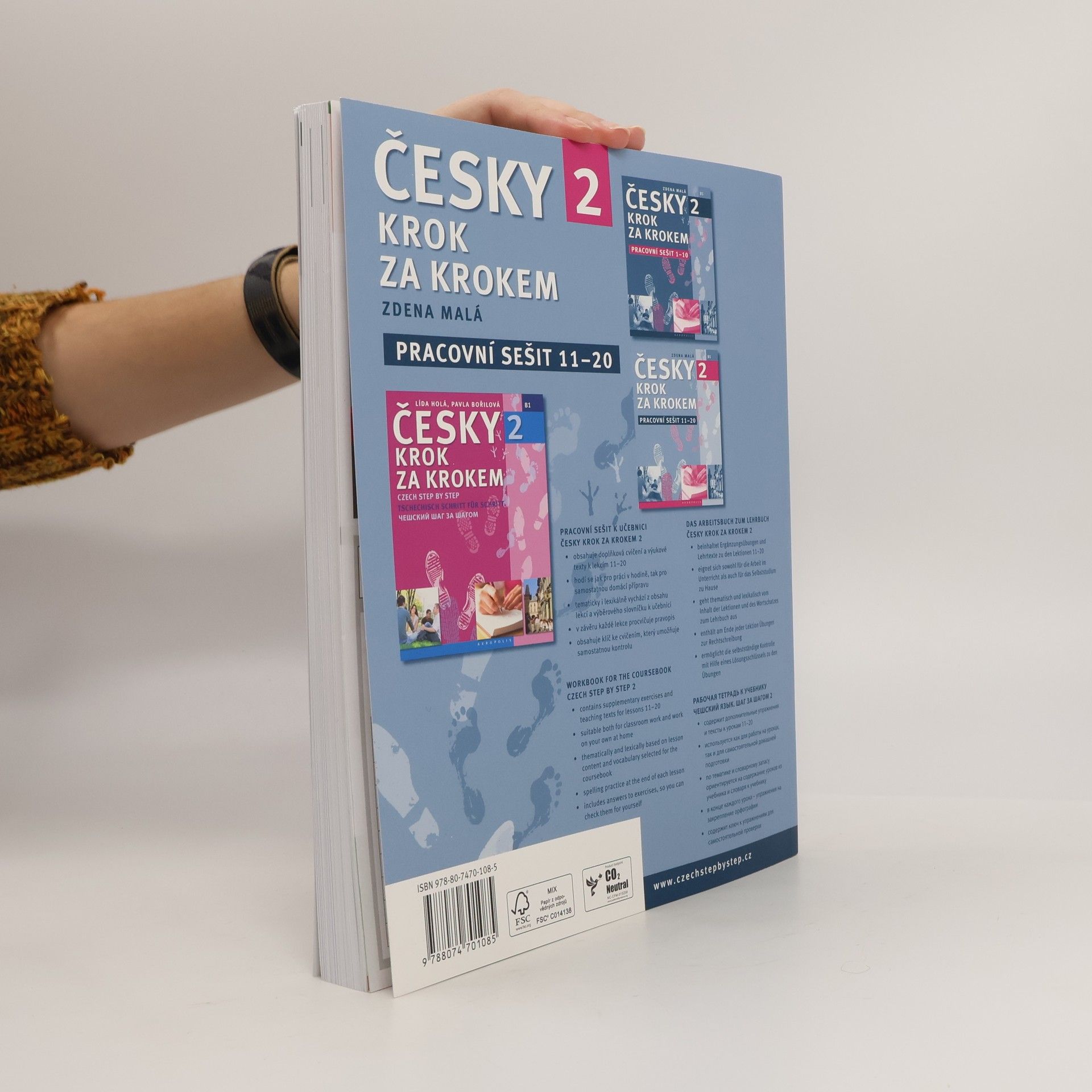 Druhý díl Pracovního sešitu autorky Zdeny Malé k učebnici Česky krok za krokem 2 (Lída Holá, Pavla Bořilová) přináší doplňková cvičení k lekcím 11–20. Ke každé lekci nabízí množství aktivit na procvičení probíraných komunikačních dovedností, slovní zásoby a gramatiky. Struktura publikace je podobná jako v prvním díle. Pro lepší orientaci opět slouží značky vedle cvičení s označením strany a cvičení v učebnici, ke kterému patří. Znaménkem plus jsou označena náročnější cvičení, která přesahují úroveň B1. Ta jsou určena k alternativnímu použití především pro studenty s mateřským slovanským jazykem nebo pro motivované studenty. Všechna zadání jsou pouze v češtině. K většině cvičení je řešení v klíči na konci publikace. Cvičebnice je tedy vhodná jak k práci v hodině, tak k samostudiu. Publikace také nabízí množství textů s úkoly, které připravují studenty na zvládnutí části čtení s porozuměním u Certifikované zkoušky z češtiny na úrovni B1 nebo u Zkoušky pro udělení občanství. Na konci každé lekce je opět stránka věnovaná pravopisu, v tomto díle především psaní i a y ve vyjmenovaných slovech. – Dvoubarevné fotografie a ilustrace.