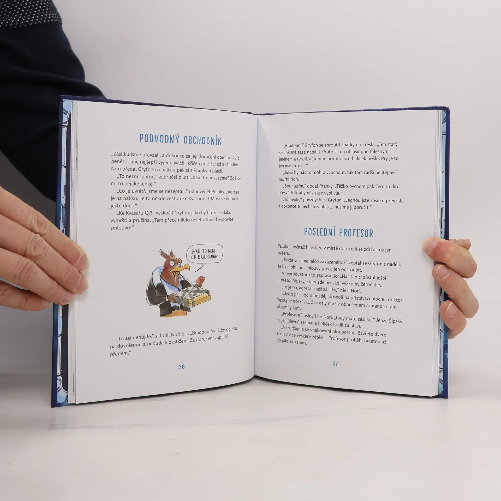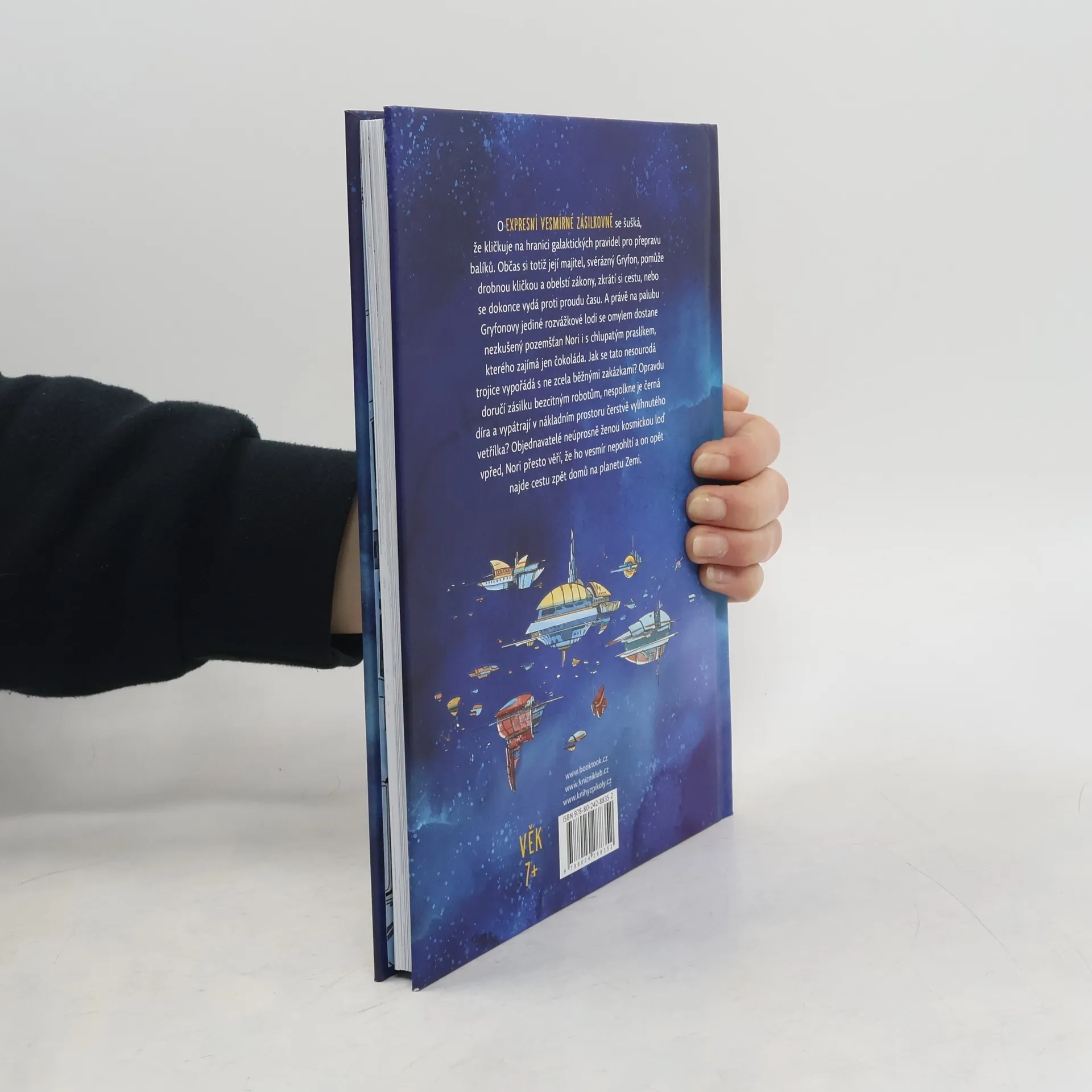 O Expresní vesmírné zásilkovně se šušká, že kličkuje na hranici galaktických pravidel pro přepravu balíků. Občas si totiž její majitel, svérázný Gryfon pomůže drobnou kličkou a obelstí zákony, zkrátí si cestu nebo se dokonce vydá proti proudu času. A právě na palubu Gryfonovy jediné rozvážkové lodi se omylem dostane nezkušený pozemšťan Nori i s chlupatým praslíkem, kterého zajímá jen čokoláda. Jak se tahle nesourodá trojice vypořádá s ne zcela běžnými zakázkami? Opravdu doručí zásilku bezcitným robotům, nespolkne je černá díra a vypátrají v nákladním prostoru čerstvě vylíhnutého vetřílka? Objednavatelé neúprosně ženou kosmickou loď vpřed, Nori přesto věří, že ho vesmír nepohltí a on opět najde cestu zpět domů na planetu Zemi.