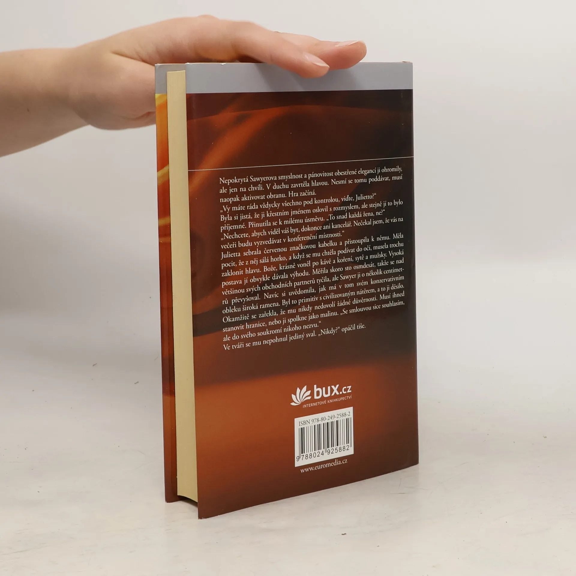 Carina a Venezia Conteovy už svoje štěstí v náruči vysněných mužů našly. Julietta, třetí sestra, nese na svých bedrech odpovědnost za rodinné pekařské impérium La Dolce Famiglia a ani ji nenapadne, že by na světě mohlo být něco víc vzrušujícího než její práce…, dokud nepotká Sawyera Wellse. Nejen že neodolatelný je on sám, navíc rozčeří klidné vody Juliettina rodinného přístavu i neodolatelnou nabídkou: co kdyby se La Dolce Famiglia stala exkluzivním dodavatelem a partnerem jeho nového mezinárodního hotelového řetězce? Julietta se však už v životě jednou spálila a moc dobře ví, že důvěřovat člověku, jehož jediný pohled ji přinutí myslet na „všechno možné“, jen ne na práci, je krajně nerozumné… Julietta je vystavena nejtěžší zkoušce svého života: má zahodit jedinečnou šanci, jak pozvednout rodinný podnik, anebo riskovat na první pohled nemožnou kombinaci chladného byznysu a spalující vášně?