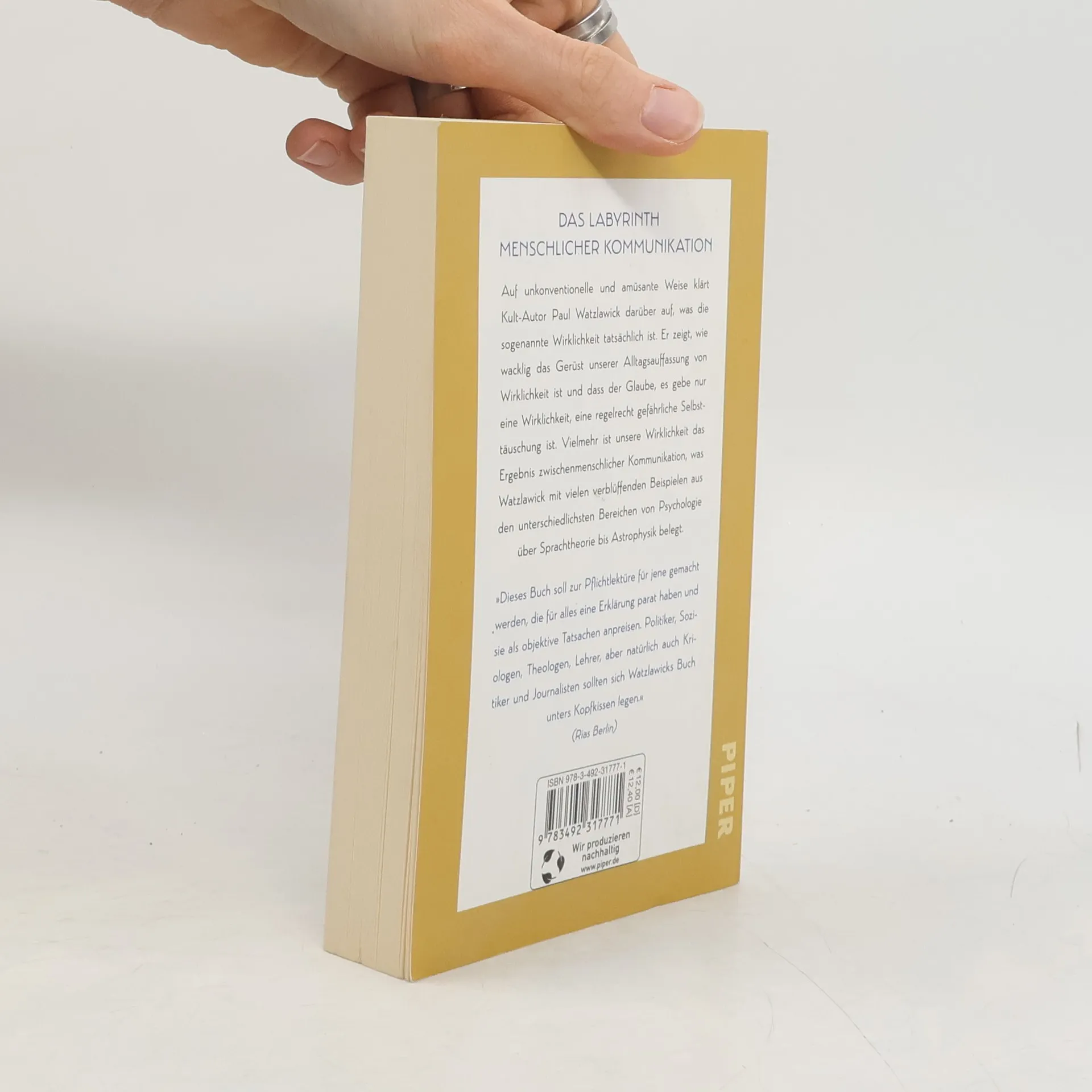 Auf unkonventionelle und amüsante Weise klärt der Bestseller- und Kult-Autor Paul Watzlawick darüber auf, was die sogenannte Wirklichkeit tatsächlich ist. Er zeigt, wie wacklig das Gerüst unserer Alltagsauffassung von Wirklichkeit ist und dass der Glaube, es gebe nur eine Wirklichkeit, eine regelrecht gefährliche Selbsttäuschung ist. Vielmehr ist unsere Wirklichkeit das Ergebnis zwischenmenschlicher Kommunikation, was Watzlawick mit vielen verblüffenden Beispielen aus den unterschiedlichsten Bereichen von Psychologie über Sprachtheorie bis Astrophysik belegt.