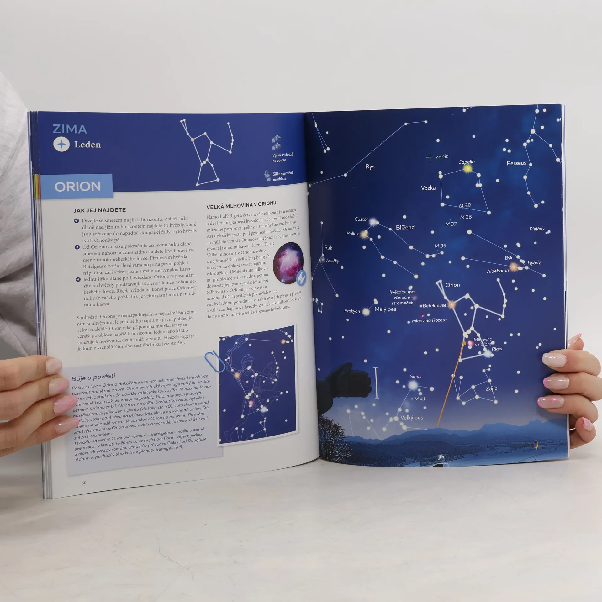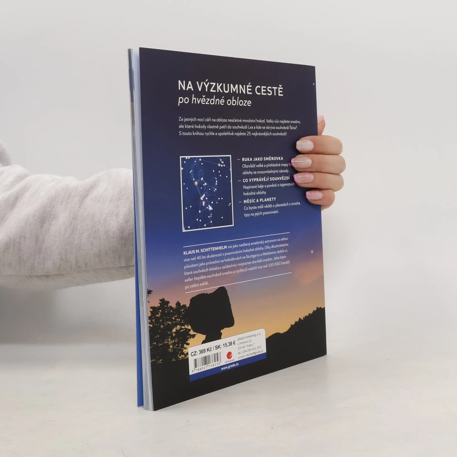 Za jasných nocí září na obloze nesčetné množství hvězd. Velký vůz najdete snadno, ale které hvězdy vlastně patří do souhvězdí Lva a kde se skrývá souhvězdí Štíra? V části knihy obsahující mapy hvězdné oblohy vám na jednotlivých dvojstranách popíšeme cestu ke 25 nejkrásnějším a nejnápadnějším souhvězdím. Podle ročního období, ve kterém můžeme určité souhvězdí nejlépe pozorovat, je jeho název uveden vždy v zeleném, žlutém, oranžovém nebo modrém rámečku. Tyto barvy odpovídají jaru, létu, podzimu a zimě. S pozorováním hvězd však není nutné začít na jaře; už při prolistování knihy můžete ihned poznat, která souhvězdí jsou v aktuálním ročním období nejlépe viditelná.V knize jsou obzvlášť velké a přehledné mapy hvězdné oblohy se srozumitelnými návody. Napínavé báje a pověsti o tajemstvích hvězdné oblohy. Co byste měli vědět o planetách s mnoha tipy na jejich pozorování.