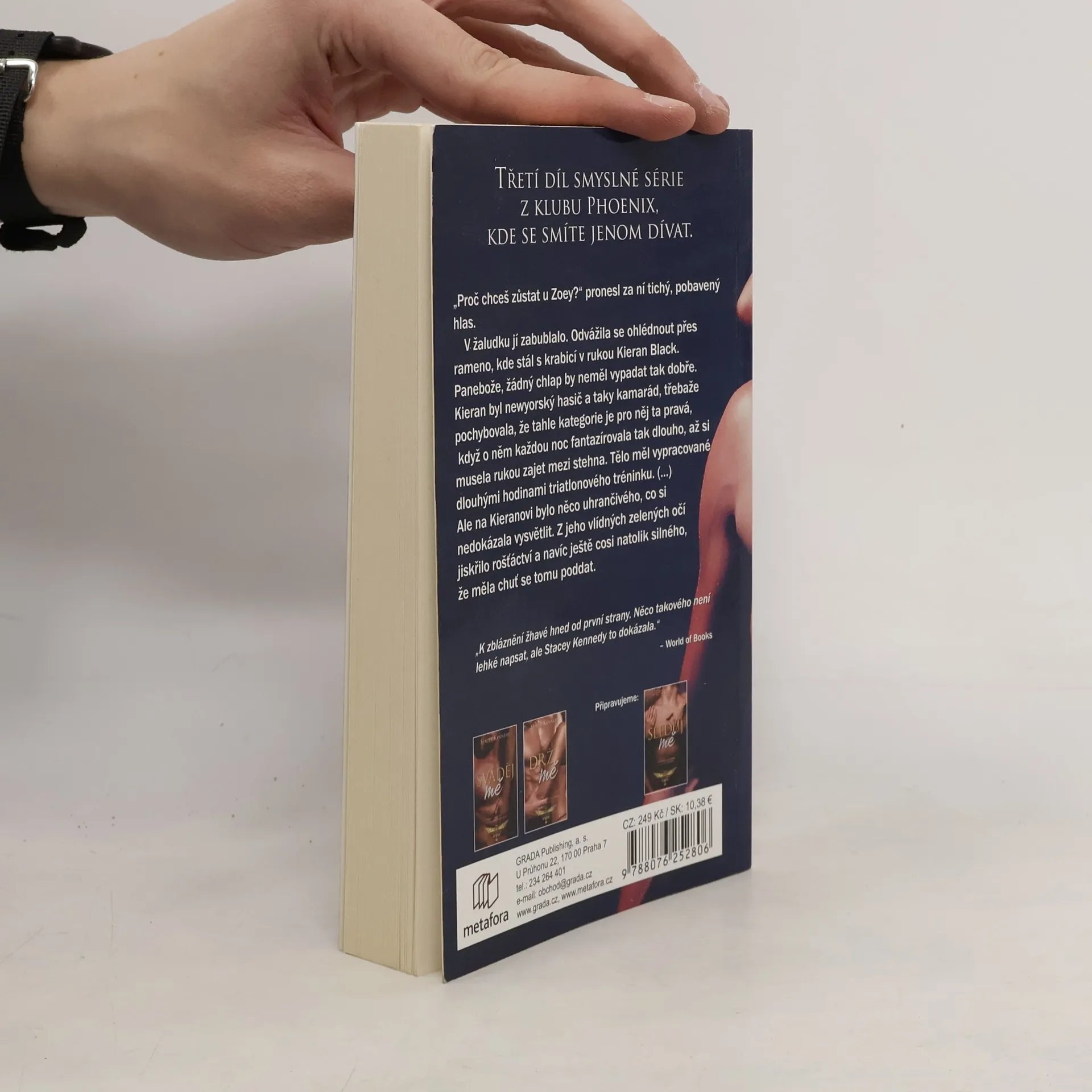 Mladá reportérka Hazel Roseová má před sebou nový úkol – najít maskovaného muže z fotografie pořízené v erotickém klubu Phoenix a pokusit se s ním udělat rozhovor. V čem je háček? V tom, že Hazel už ví jak o klubu, tak o muži ukrytém za zlatou maskou. Jmenuje se Kieran Black a je to její sexy spolubydlící. Hazel za žádnou cenu nechce odhalit světu jeho identitu, stejně jako se neodvažuje s ním probírat jeho tajnou vášeň. Stačí totiž jediný jeho úsměv, aby zrudla jako rak. Kieran preferuje sex tvrdý a vztahy krátké. Jako dítě rozvedených rodičů se nikdy nechtěl vázat. Najednou se ale dostal do věku, kdy se jeho přátelé žení, a on si začíná uvědomovat, že jeho život je vlastně prázdný. Na svatbě jejich společných přátel Rhyse a Zoey konečně svou nenápadnou spolubydlící trochu poznává. A když mu Hazel vylíčí trable s bývalým přítelem, Kieran jí nabídne dohodu. Hazel dobře ví, že jejich žhavý románek nikdy neměl přerůst v nic vážnějšího. Brzy však zjistí, že tomuhle neznámému Kieranovi – který v sobě skrývá víc vřelosti, než sám tuší – začíná propadat. Když život do jejich nevázaného vztahu vnese komplikace, oba se musí rozhodnout, zda se dál vydají každý po vlastní ose, nebo se pokusí nechat minulost za zády a vyrazí společnou cestou.