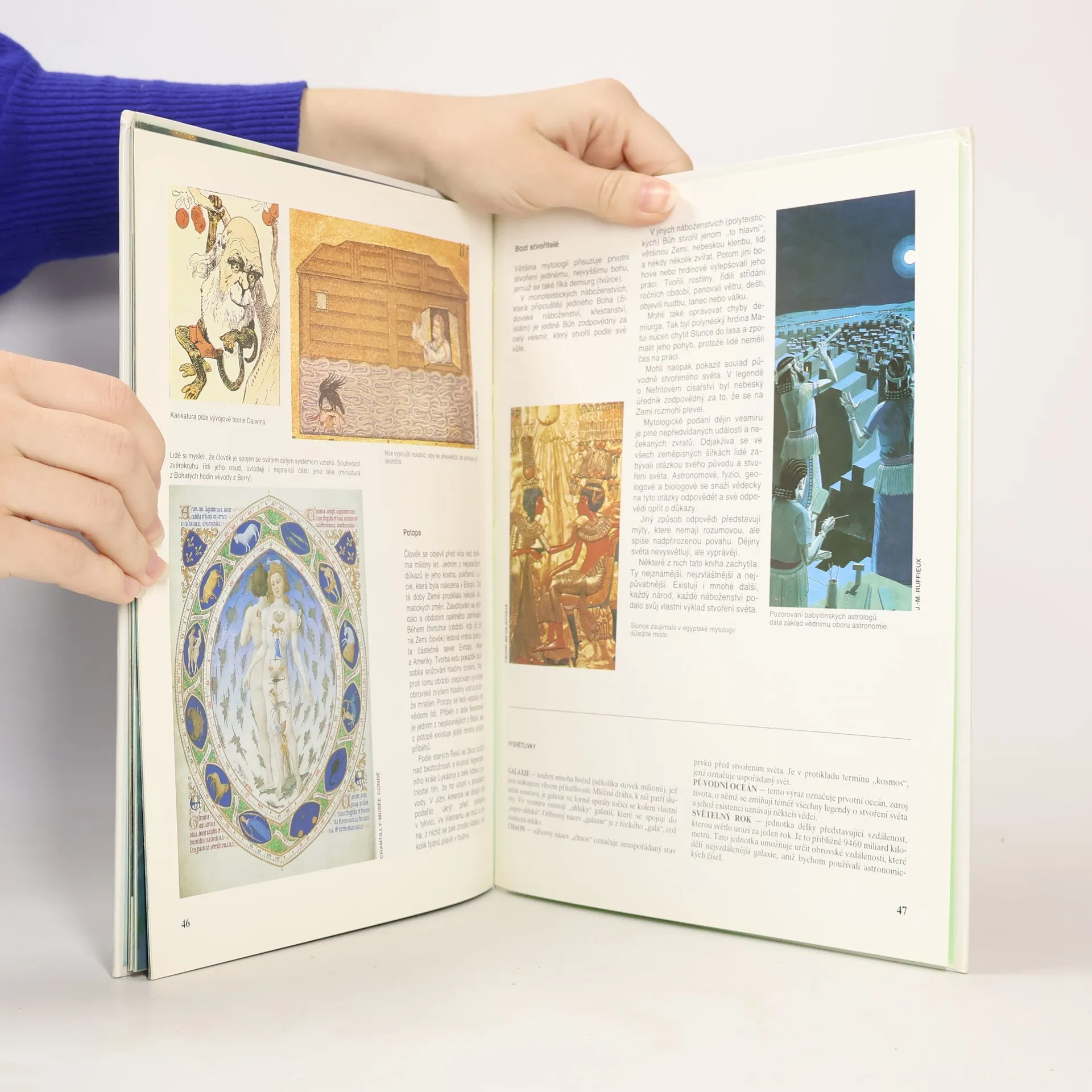 Fantazii člověka od počátku světa vzrušujf tajemní bohové, zázračné bytosti a lidští hrdinové. Tato kniha nám pootevře okénko k tajemstvím, která si lidstvo uchovává ve své paměti. Přiblíží nám představy lidí z různých koutů naší planety o boji božstev proti počátečnímu zmatku, o postupném uspořádávání světa, o zrození Země, Slunce, člověka a živočichů... Publikace je určená nejen mládeži, ale i dospělým, kteří si chtějí nenáročnou a poutavou formou objasnit nebo znova oživit rozmanité mýty a legendy, jež kniha současně porovnává s historickými fakty.