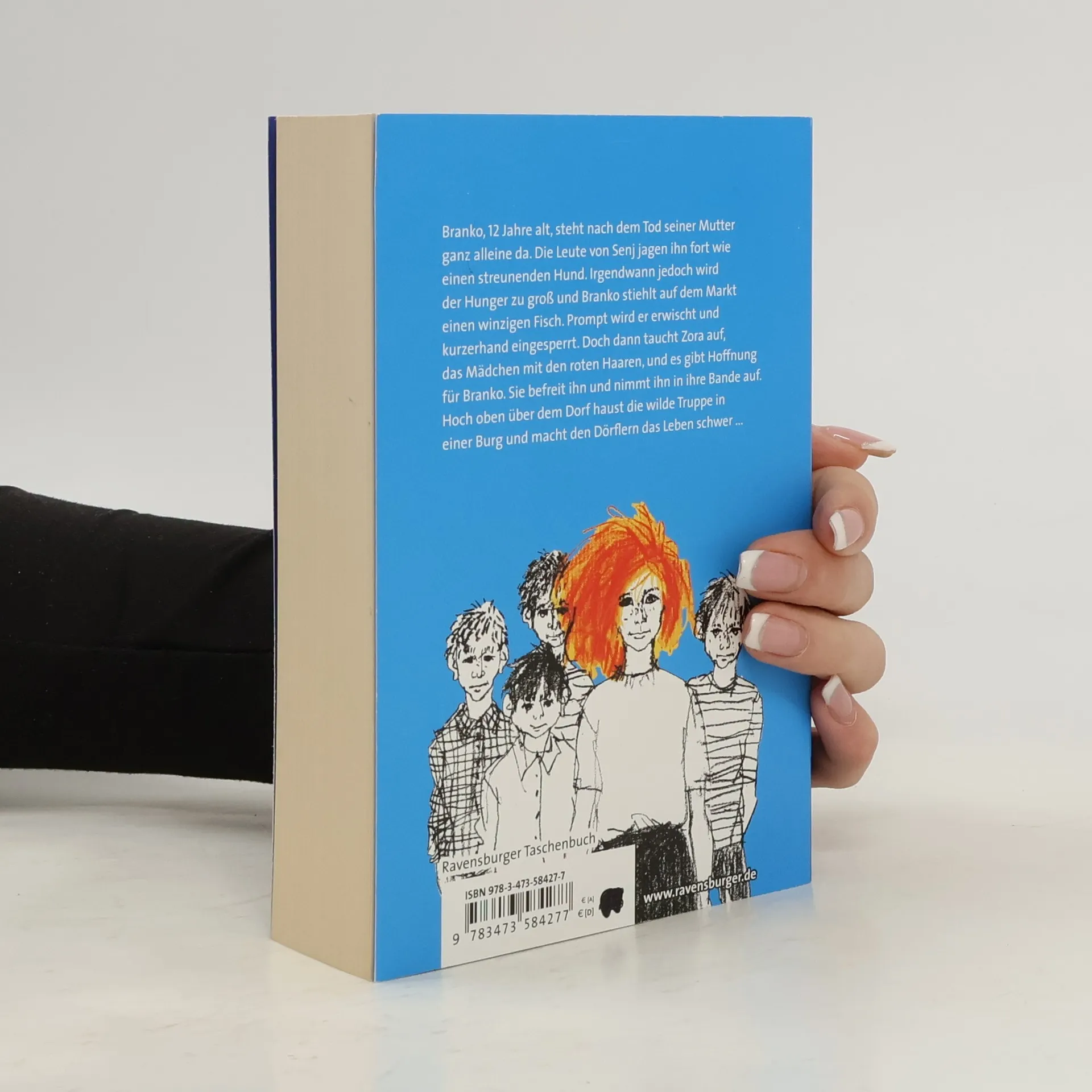 Eine Stadt am Adriatischen Meer ist Schauplatz dieses Romans, der zu den Klassikern der Jugendliteratur zählt. Branco, der Sohn eines fahrenden Geigers und einer Tabakarbeiterin, verliert seine Mutter. Er hat kein Zuhause mehr. Bald verdächtigt man ihn des Diebstahls und sperrt ihn ein. Doch Zora, das Mädchen mit den roten Haaren, befreit ihn und er wird in die Bande junger Uskoken aufgenommen, die in der alten Burg hausen. Nicht Romantik, sondern Hunger und Not haben sie zusammengetrieben. Sie kämpfen ums tägliche Brot, gegen Entbehrung und Verfolgung. So ernst die Lage der Kinder oft ist, so herrlich sind die Einfälle, mit denen sie ihren Widersachern begegnen, und umso selbstloser wird ihre Kameradschaft. Mögen die Erwachsenen sich von ihnen abwenden: Sie finden aneinander Halt und ein eigenes Ehrgefühl bewahrt sie vor Schlechtem. Ihre wilden Streiche bringen jedoch die Bürgerschaft gegen sie auf und es droht das Gefängnis. Das Buch erschien erstmalig 1941 im Verlag Sauerländer und erzählt die Geschichte einer Gruppe von Waisenkindern, die sich unter ihrer Anführerin, der Roten Zora, im Kroatien der dreißiger Jahre durchschlägt. Der Kinderbuchklassiker schildert die Nöte obdachloser Kinder, wie sie noch heute akut sind. In 18 Sprachen übersetzt, wurden alleine von der deutschsprachigen Ausgabe über 150.000 Bücher verkauft.